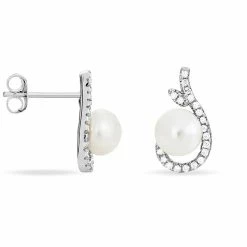 Histoire D’Or Boucles D’oreilles Puces Cyrana Argent Blanc Perle De Culture Et Oxyde