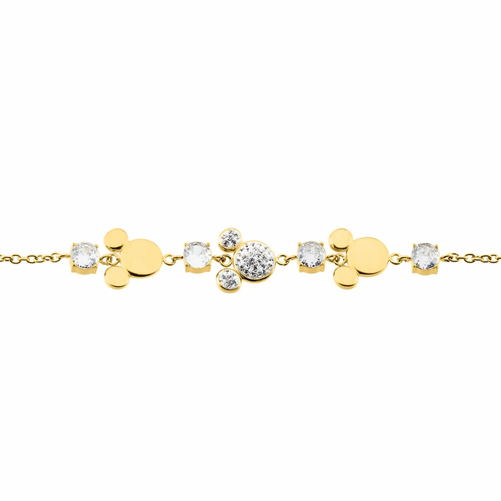 Bracelet Disney Acier Doré Motif Tête De Mickey Pavage Cristaux Et Oxydes De Zirconium Maille Forçat 16+2cm Hsb-41615g-1