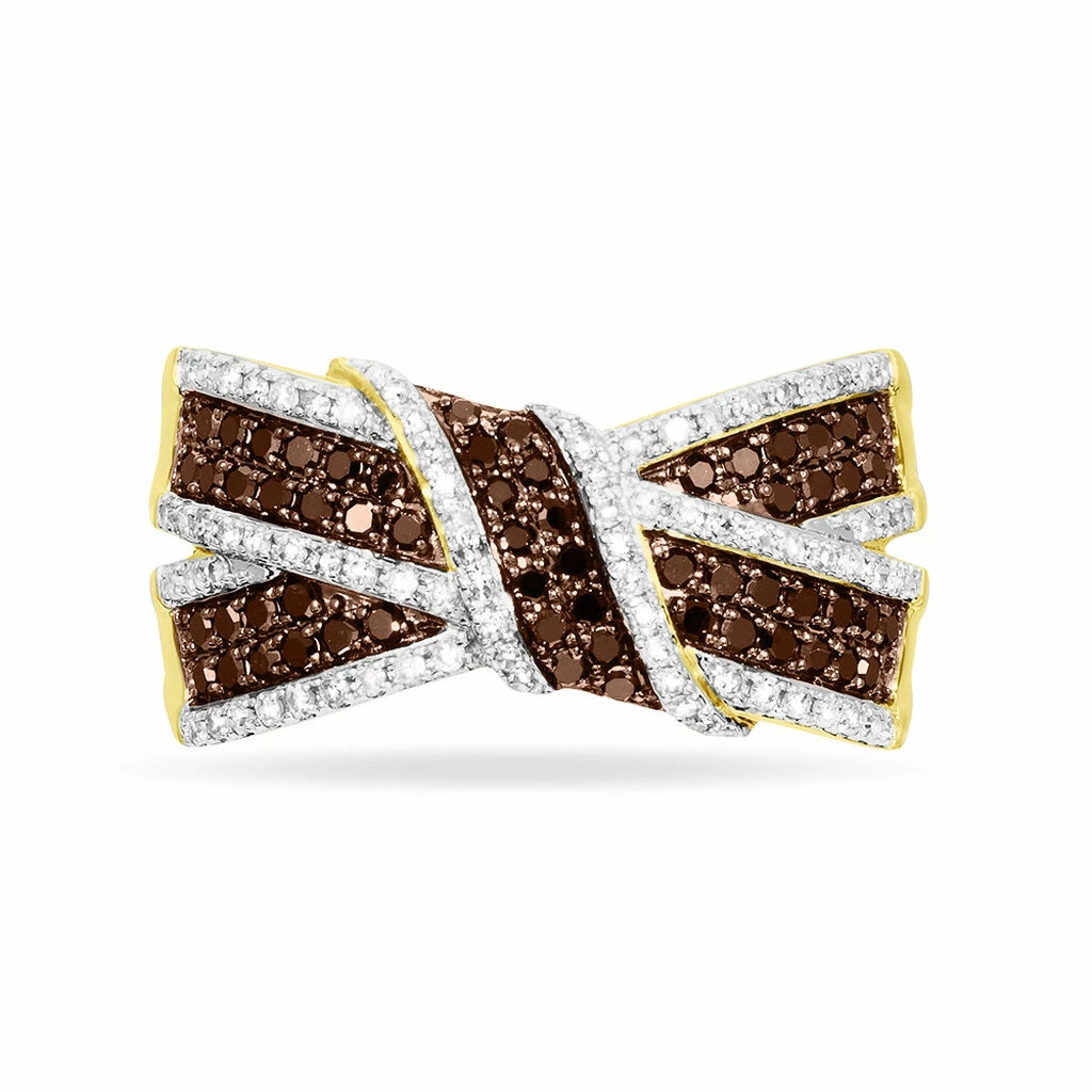 Bague Or Jaune 750/1000 Forme Nœud Pavage Diamants Bruns Et Blancs