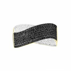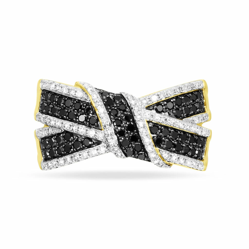 Bague Or Jaune 375/1000 Forme Nœud Pavage Diamants Noirs Et Blancs