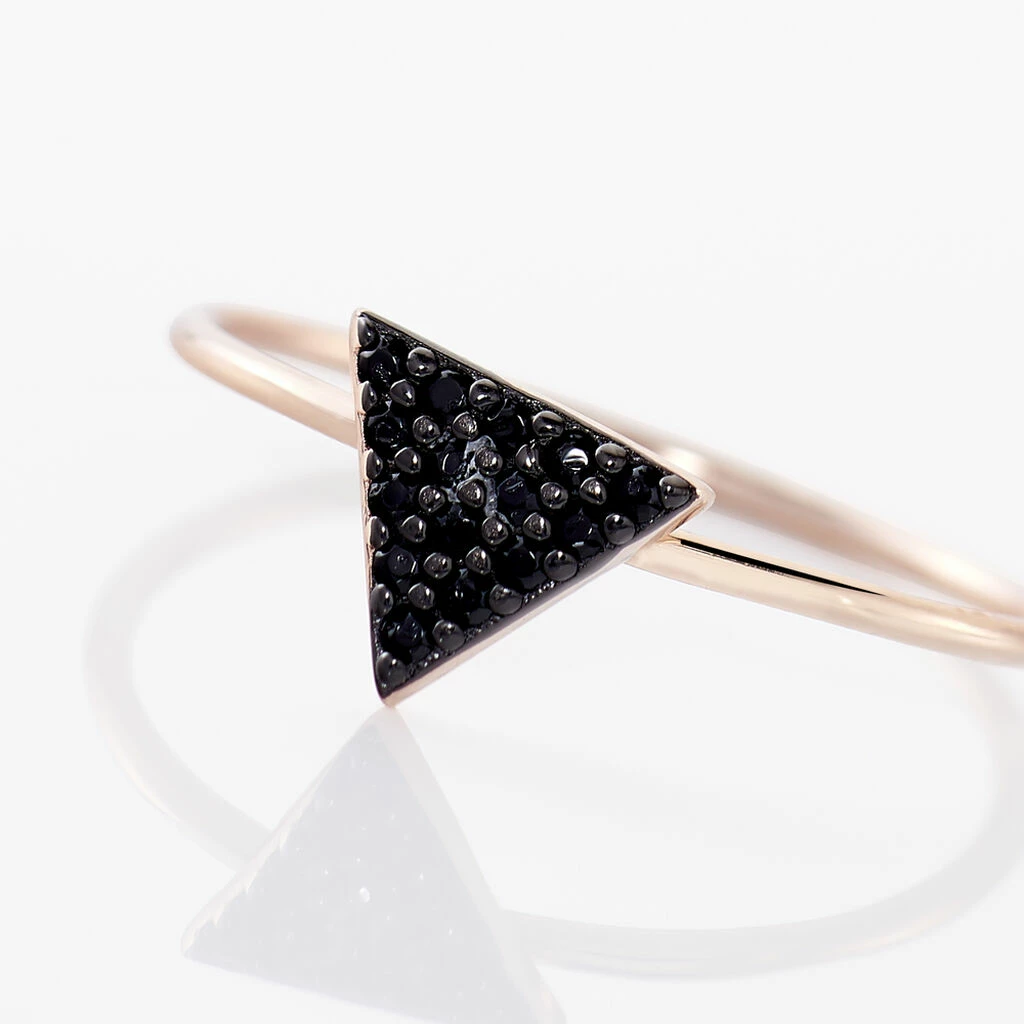 Bague Argent Rose 925/1000 Forme Triangle Avec Oxydes De Zirocnium Noirs
