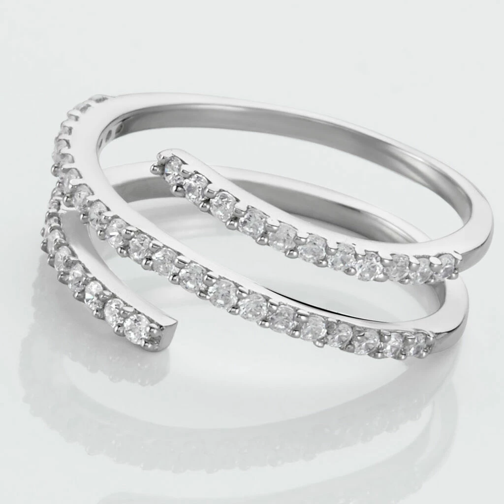 Bague Argent Blanc 925/1000 Multitours Pavage Oxydes De Zirconium