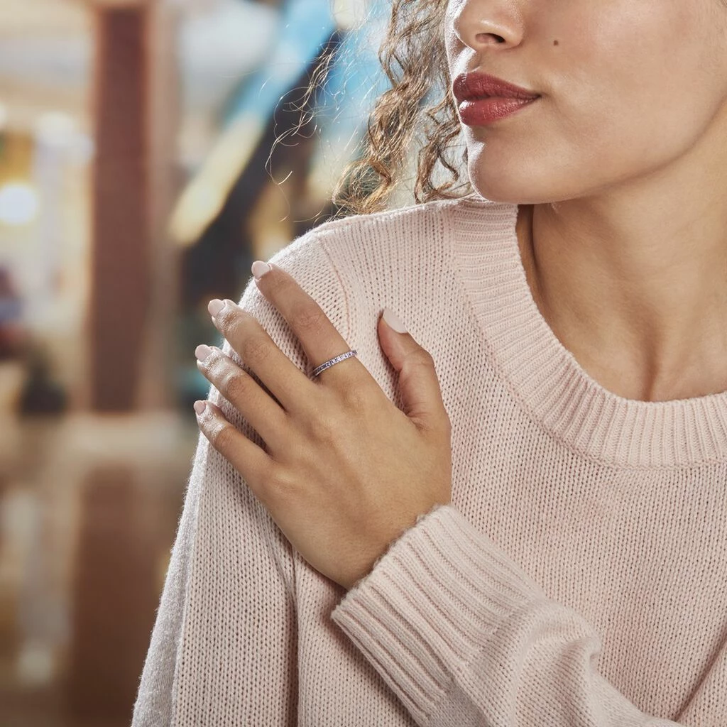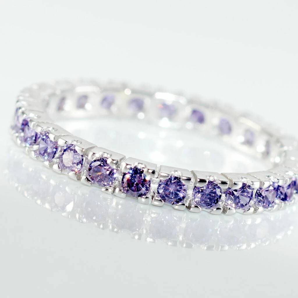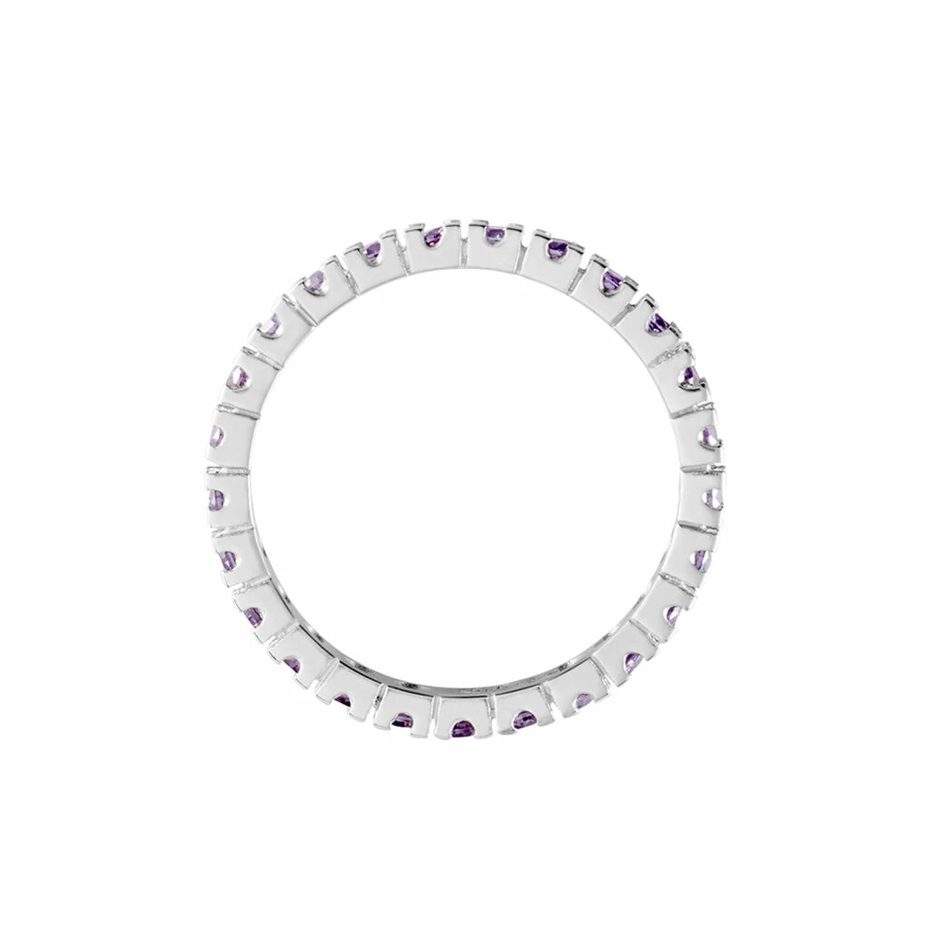 Bague Argent Blanc 925/1000 Tour Complet Sertis Griffes Oxyde De Zirconium Violet