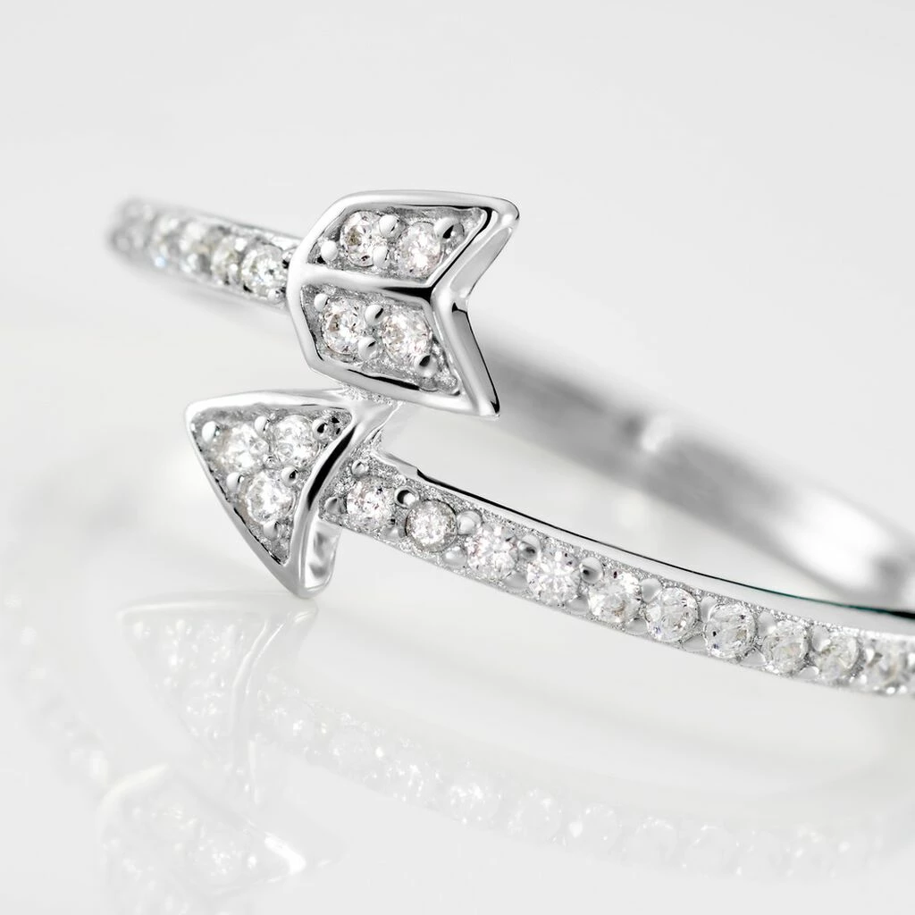 Bague Argent Blanc 925/1000 Flèche Pavage Oxydes De Zirconium