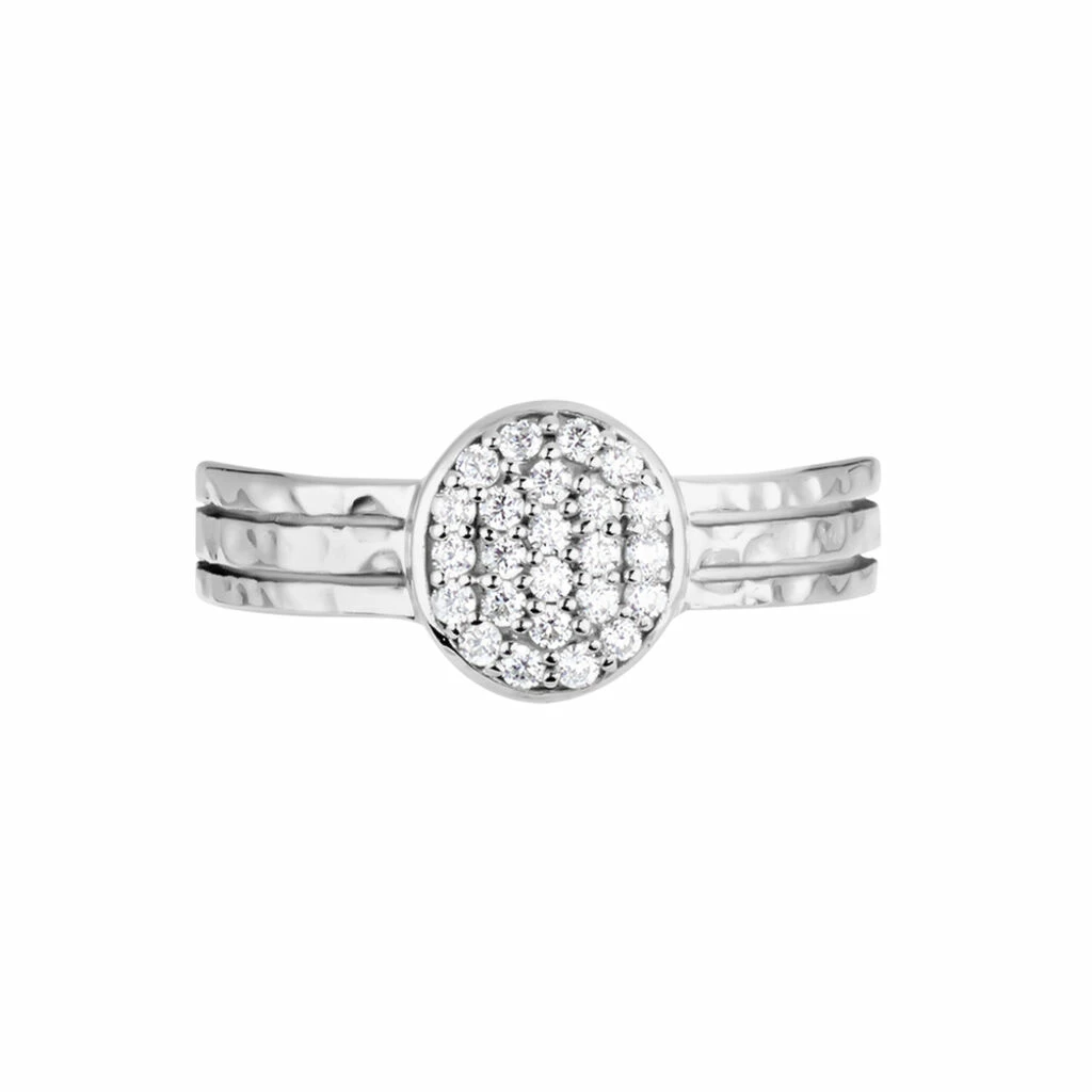 Bague Argent Blanc 925/1000 Corps De Bague Martelé Pastille Pavage Oxydes De Zirconium