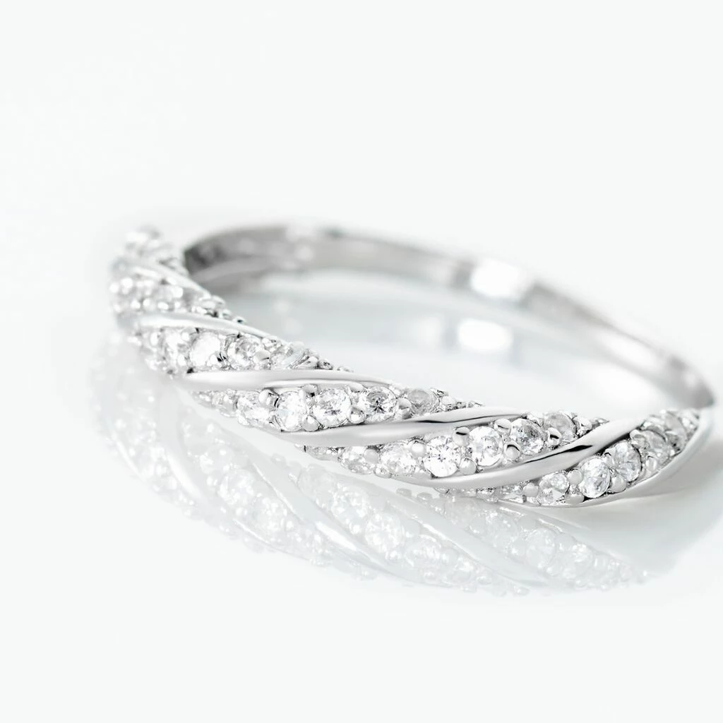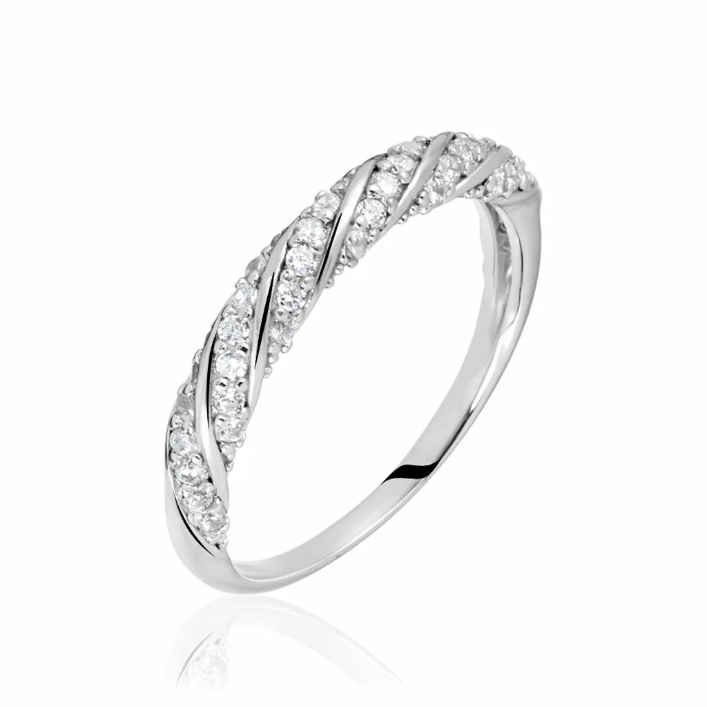 Bague Argent Blanc 925/1000 Corps De Bague Torsadé Pavage Oxydes De Zirconium