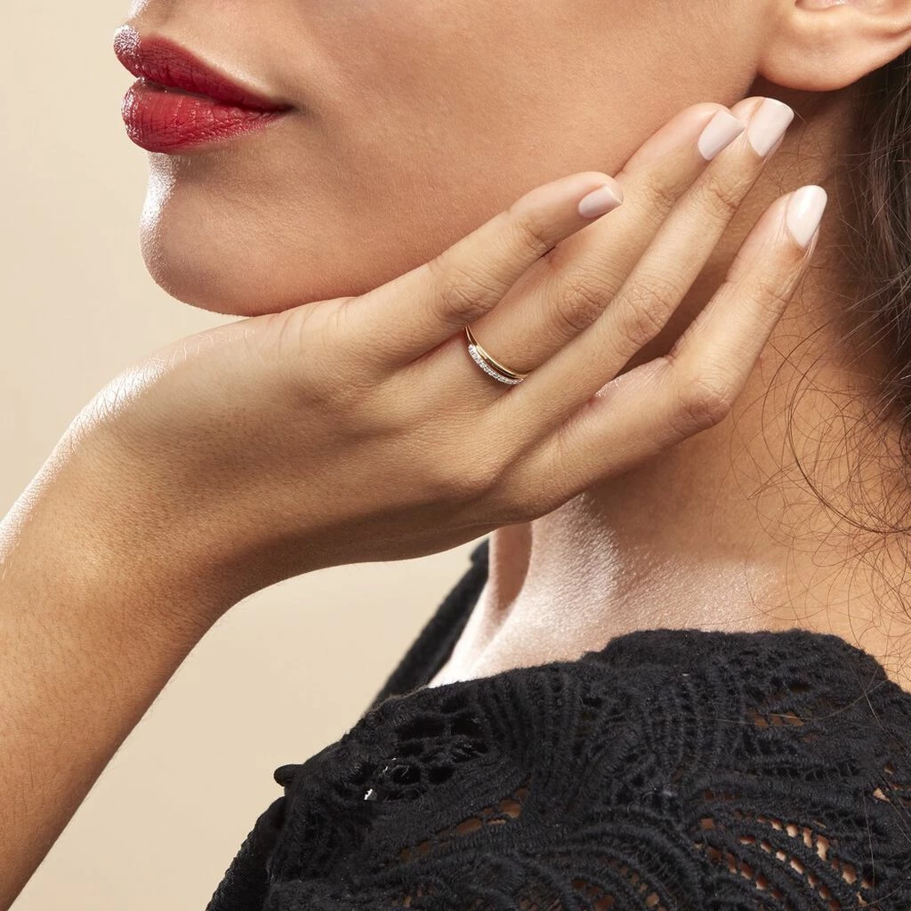 Bague Or Jaune 375/1000 Barette Ajouree Pge Diamants