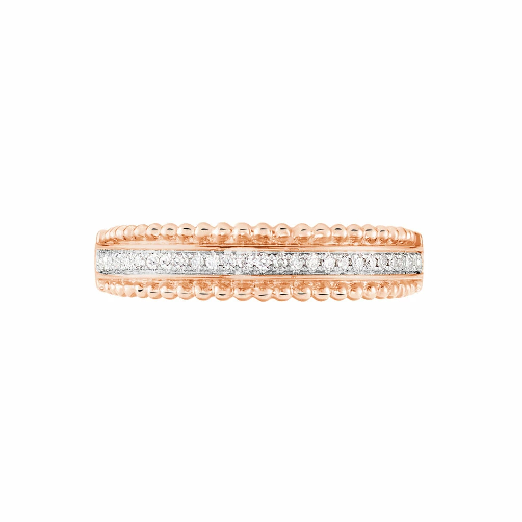 Bague Or Rose 375/1000 Effet Perle Pavage Diamants