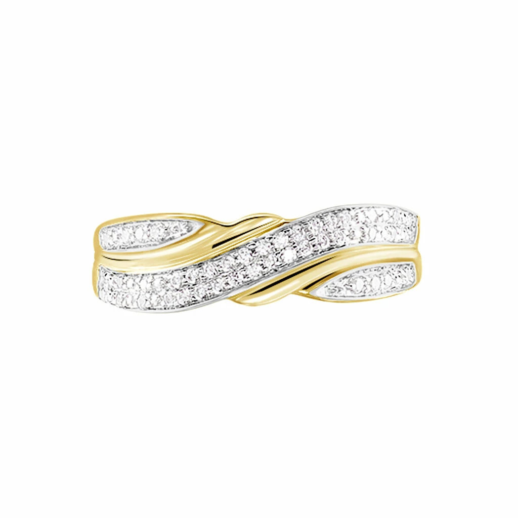Bague Or Jaune 375/1000 Bandeau Croisé Oxydes De Zirconium Micro Serti Pm