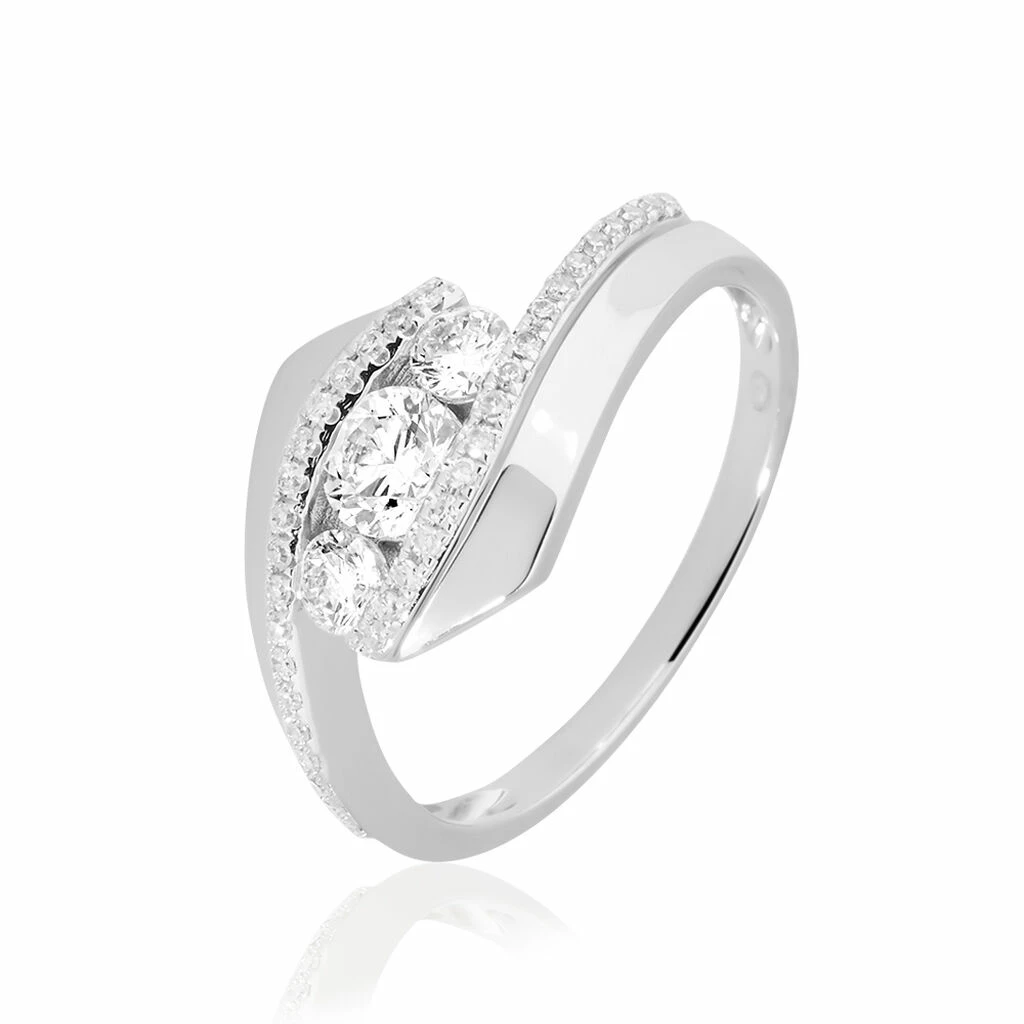 Bague Trilogie Or Blanc 375/1000 3 Diamants Centraux Accompagnée Diamants 0.614cts