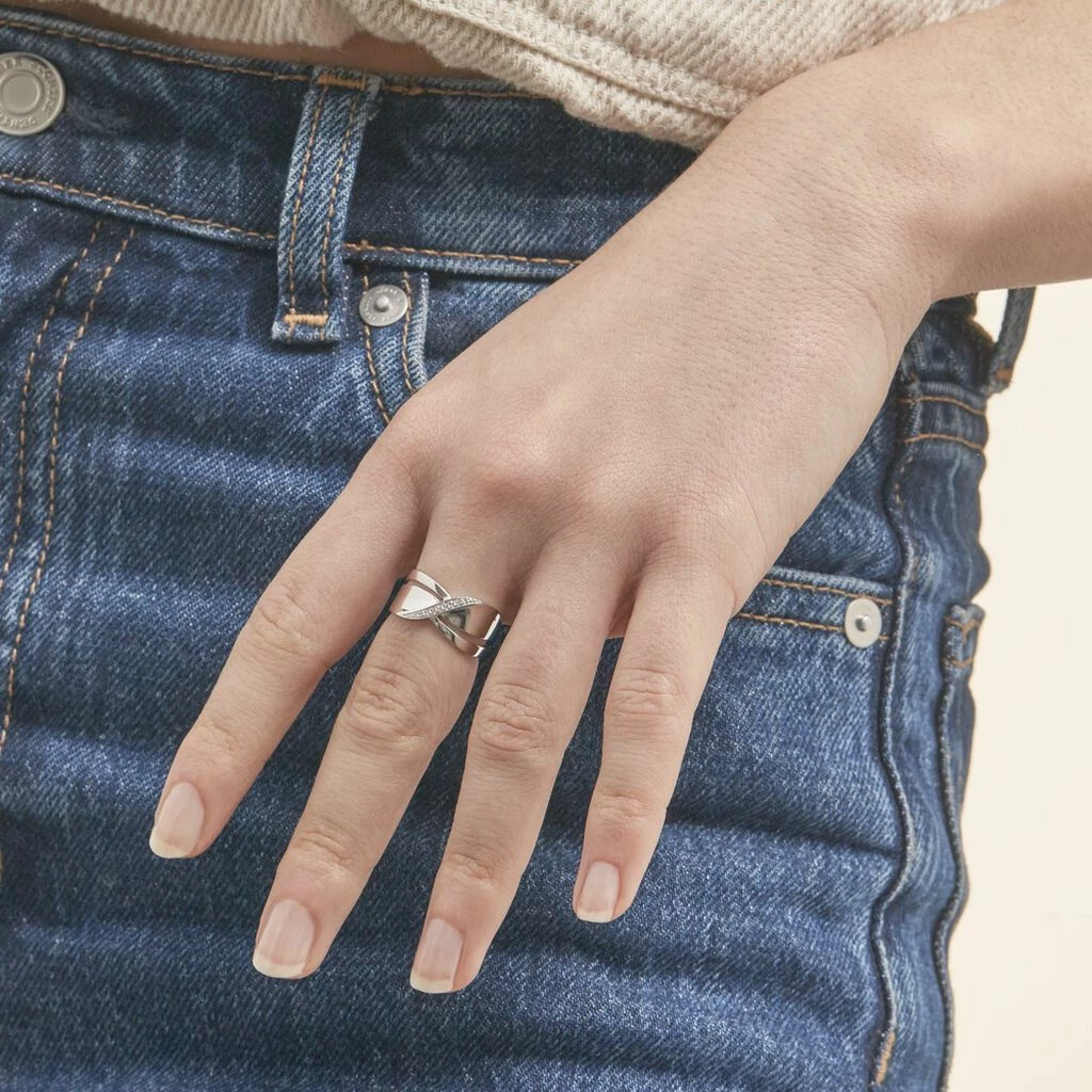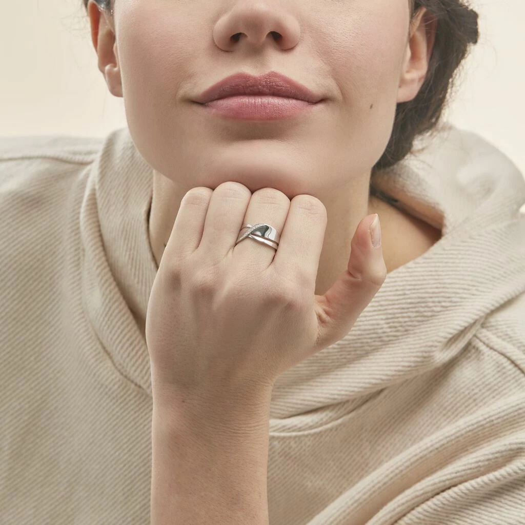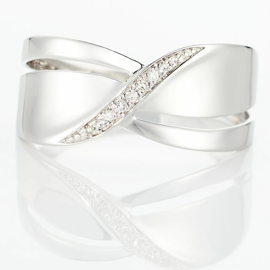 Bague Or Blanc 375/1000 Vagues Larges Croisées Pavage Diamants