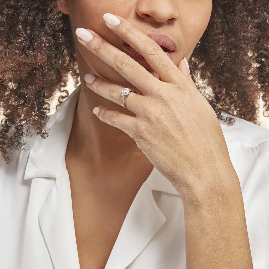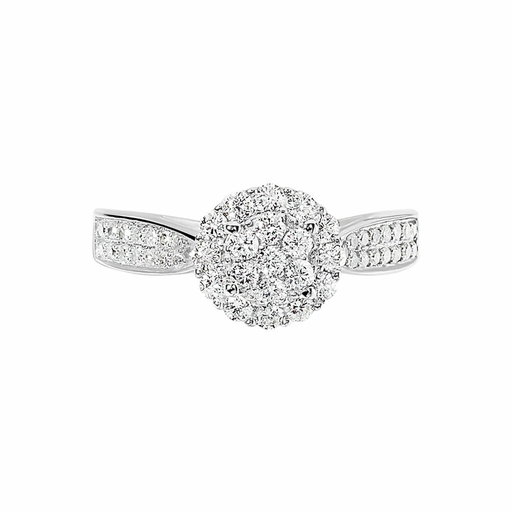 Bague Or Blanc 375/1000 Diamant Central Effet Chou Entourage Diamants Corps De Bague Accompagne Diamants 0.568cts