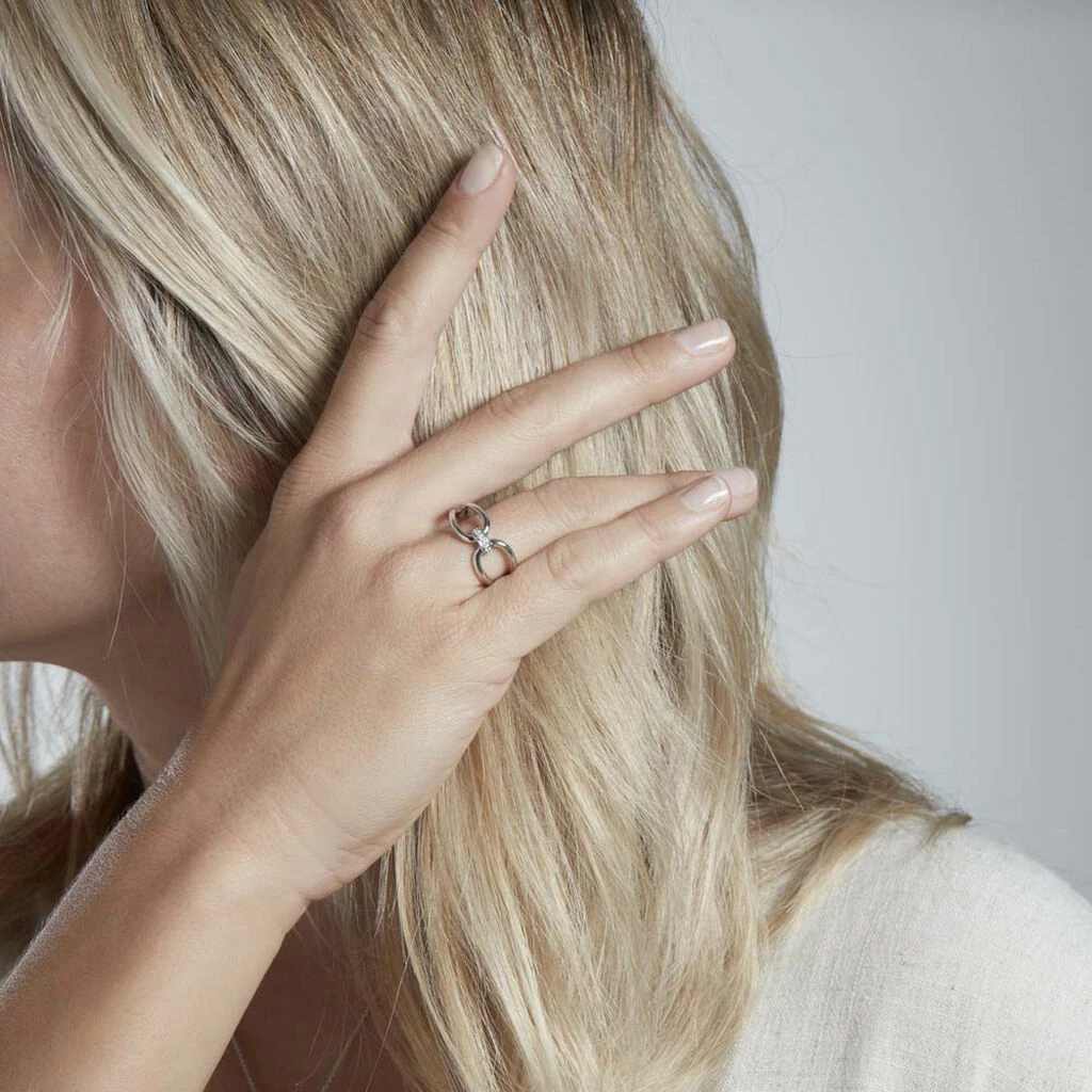 Bague Argent 925/1000 Double Cercle Micro Setting Oxydes De Zirconium