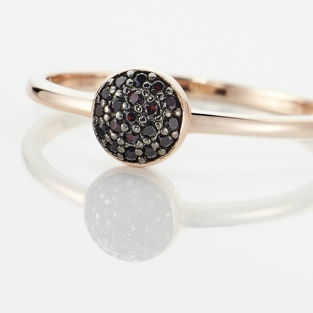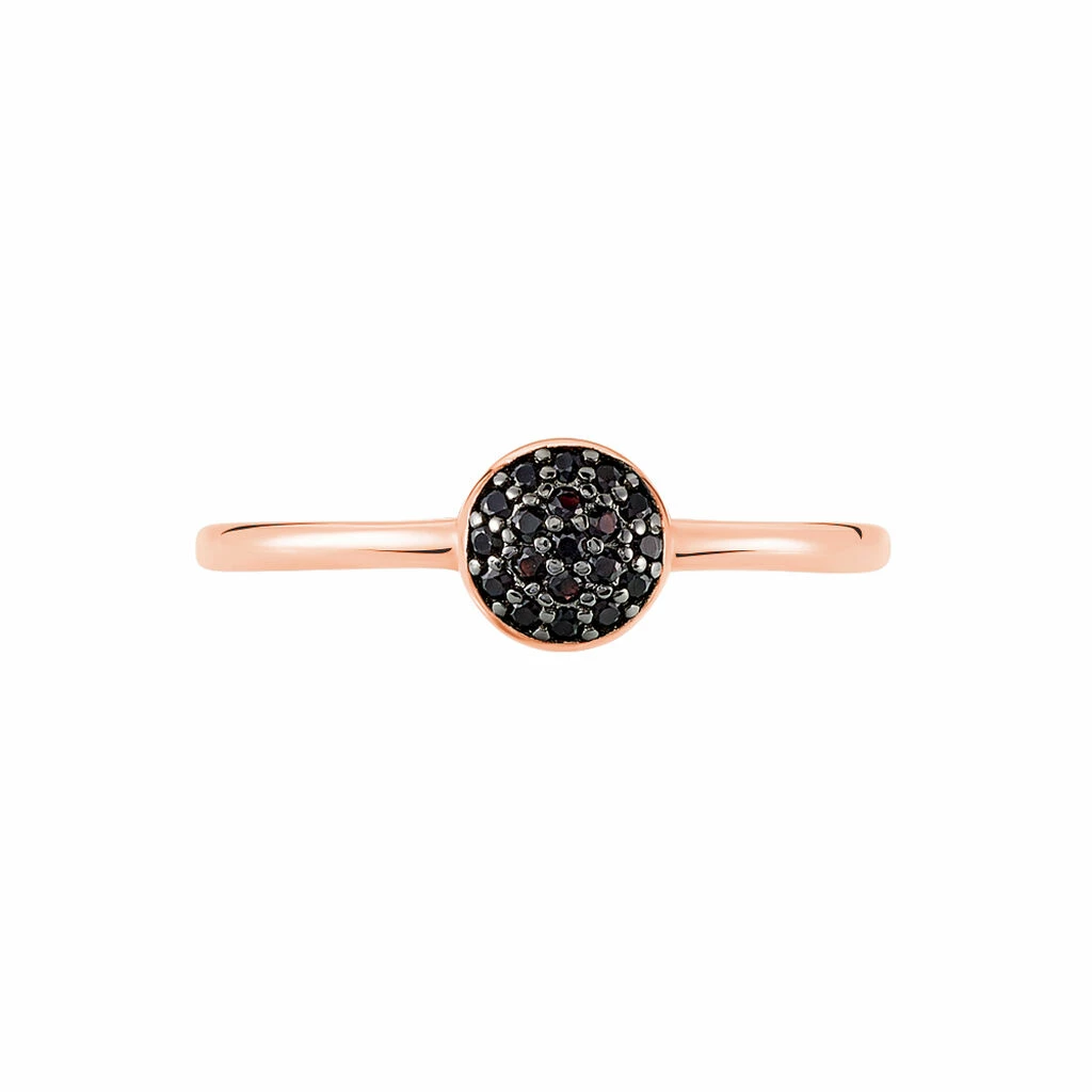 Bague Argent Rose 925/1000 Forme Ronde Oxydes De Zirconium Noirs Centraux