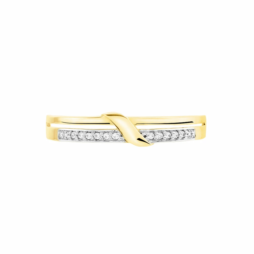 Bague Or Jaune 375/1000 2 Rangs Ajoures Semi Pavage Diamants Barette Croisee Gm