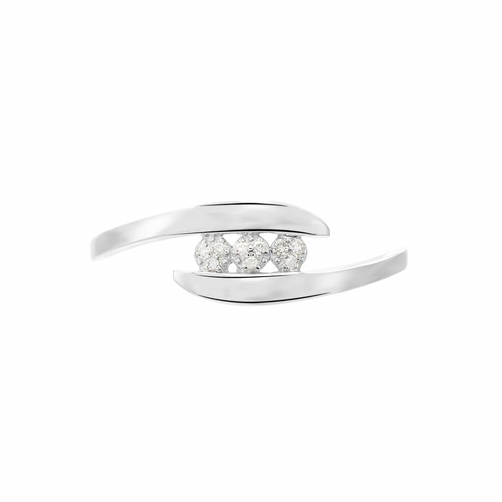 Bague Or Blanc 375/1000 Delphine Forme Trilogie Diamants 0.027cts