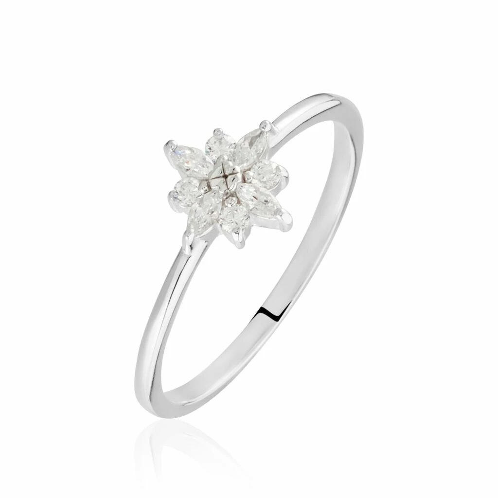 Bague Argent Blanc 925/1000 Motif Etoile Oxydes De Zirconium Ronde Et Navette