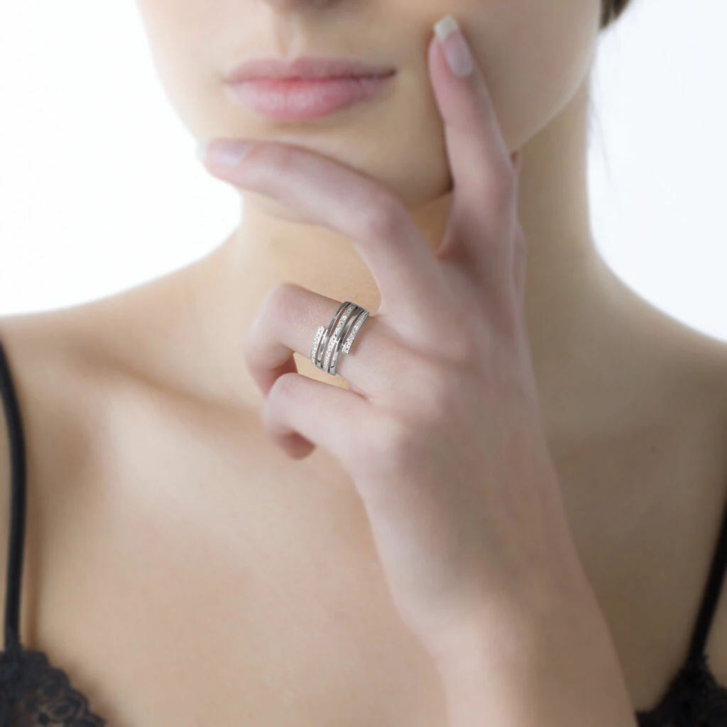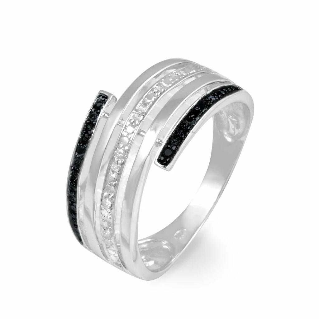 Bague Or Blanc 375/1000 Large Diamants Blancs Et Noirs
