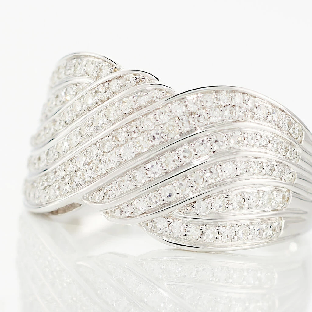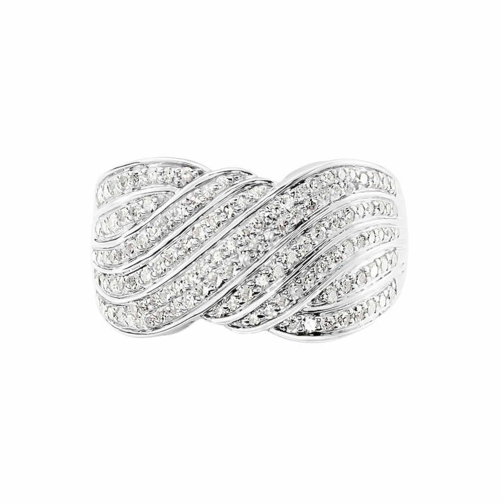 Bague Or Blanc 375/1000 Motifs Vagues Pavage Diamants