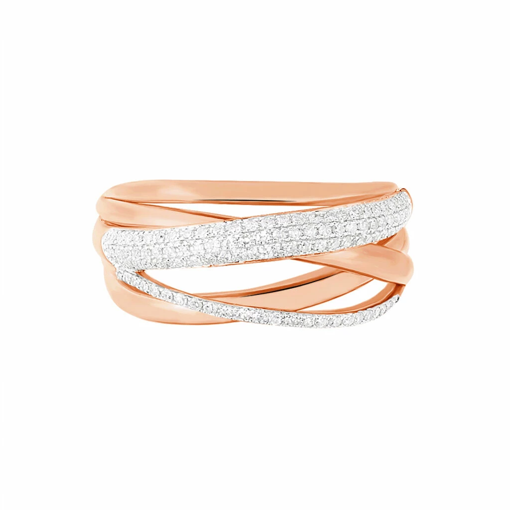 Bague Or Rose 375/1000 Brides Croisees Et Pavages Diamants