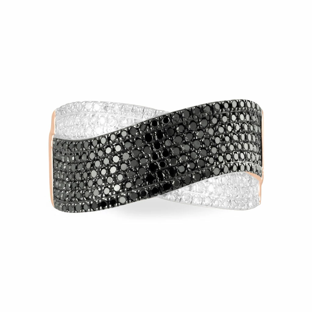 Bague Or Rose 750/1000 Pavage Diamants Blancs Et Noirs Forme Ruban