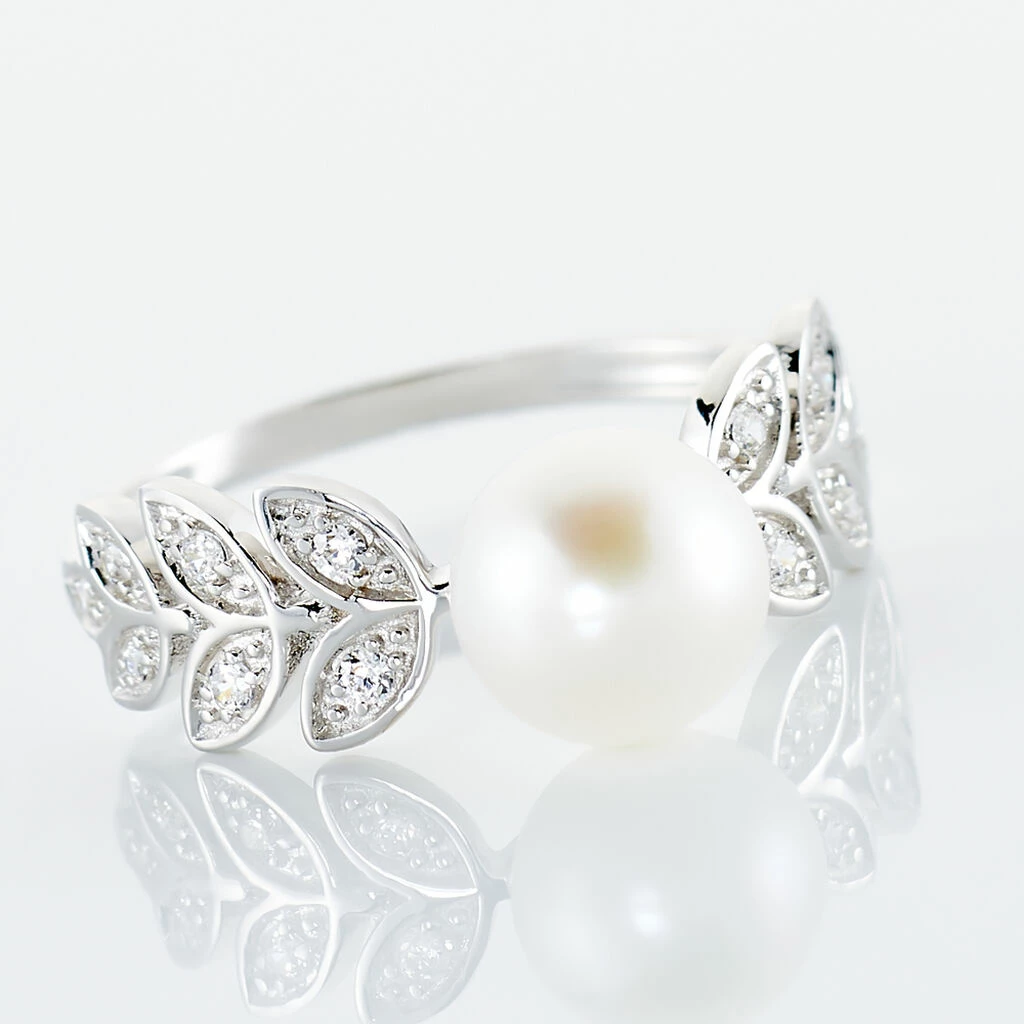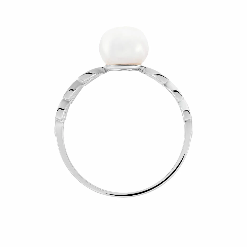 Bague Or Blanc 375/1000 Perle De Culture 7-7.5cm + Motifs Epis Paves Oxydes De Zirconium