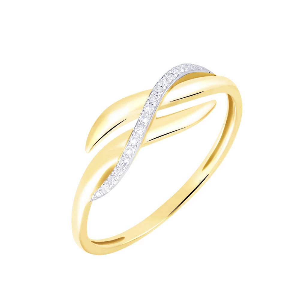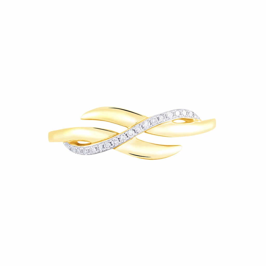Bague Or Jaune 375/1000 Vague Double Diamants Forme Croisee