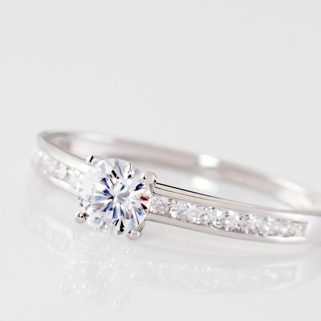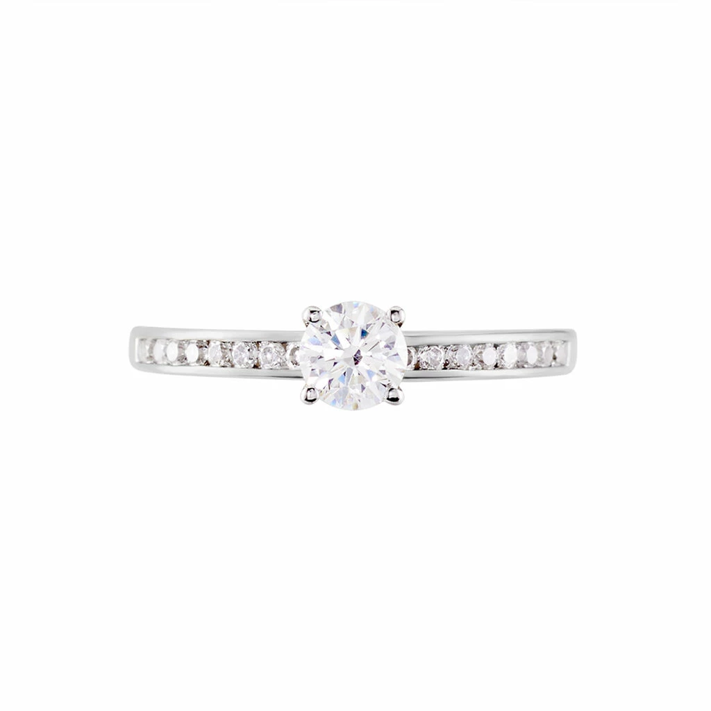 Bague Or Blanc 375/1000 Oxyde De Zirconium Blanc Central Accompagne D’oxydes De Zirconium Serti Rail
