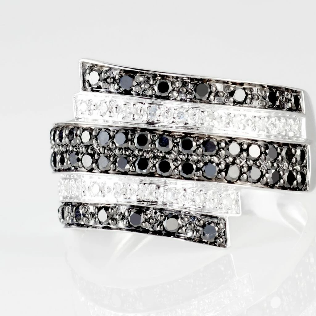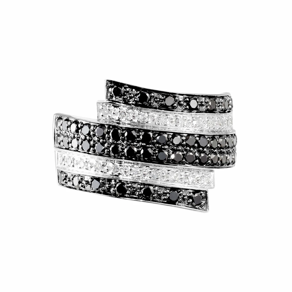 Bague Or Blanc 375/1000 Diamants Blancs Et Noirs