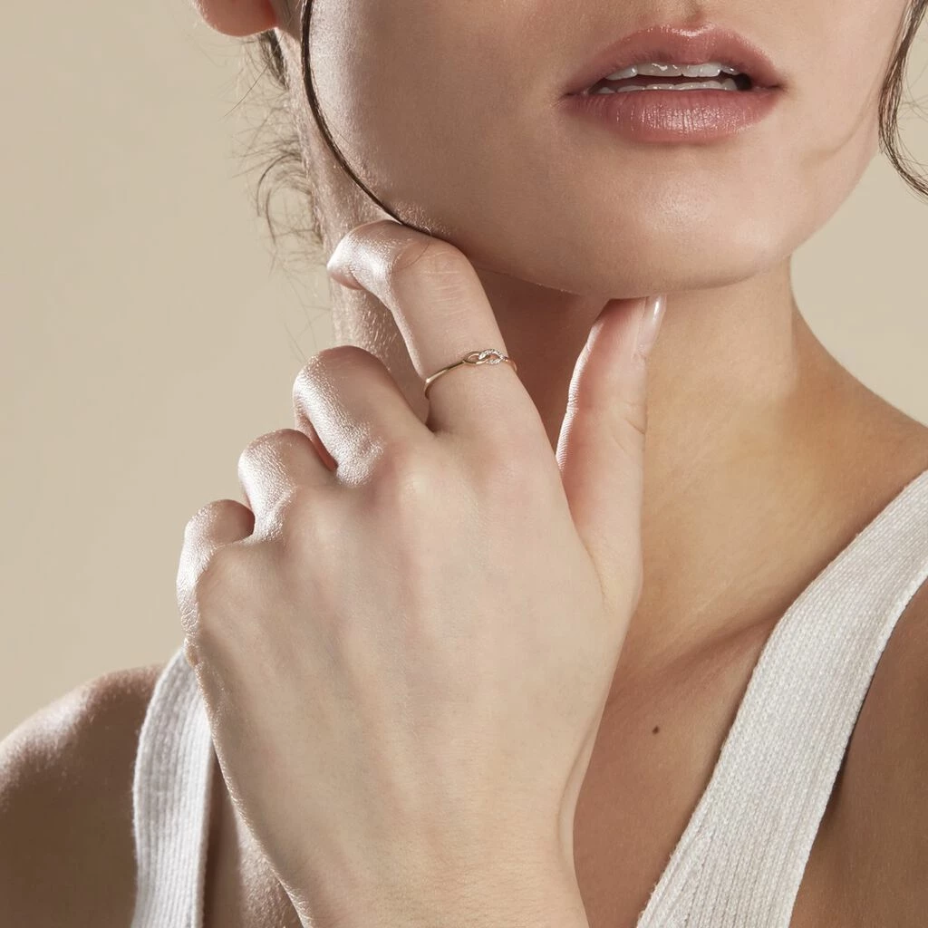 Bague Or Jaune 375/1000 Cercles Entrelaces Pavage Diamants