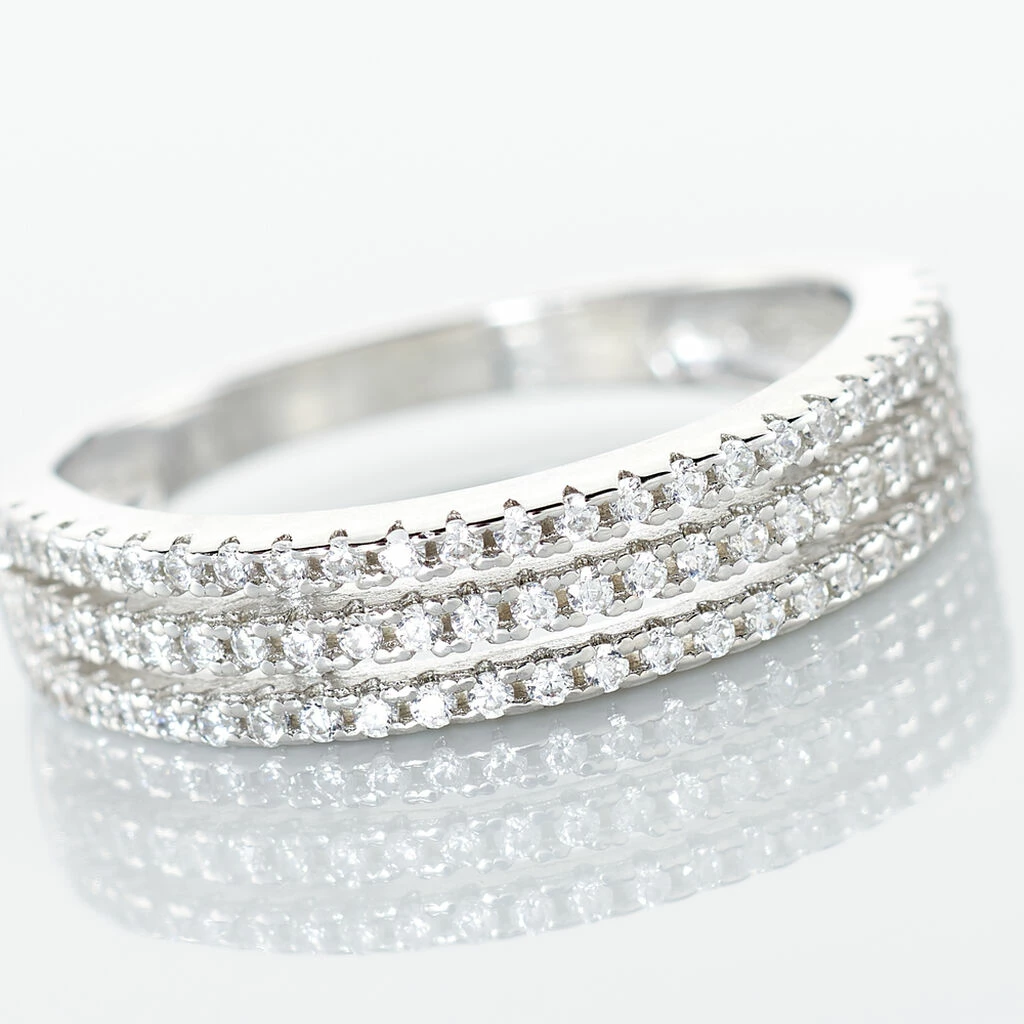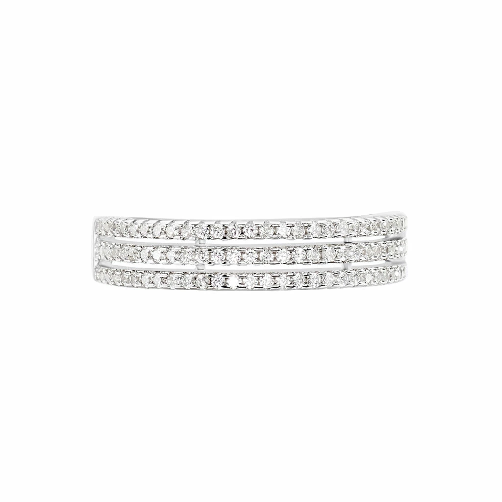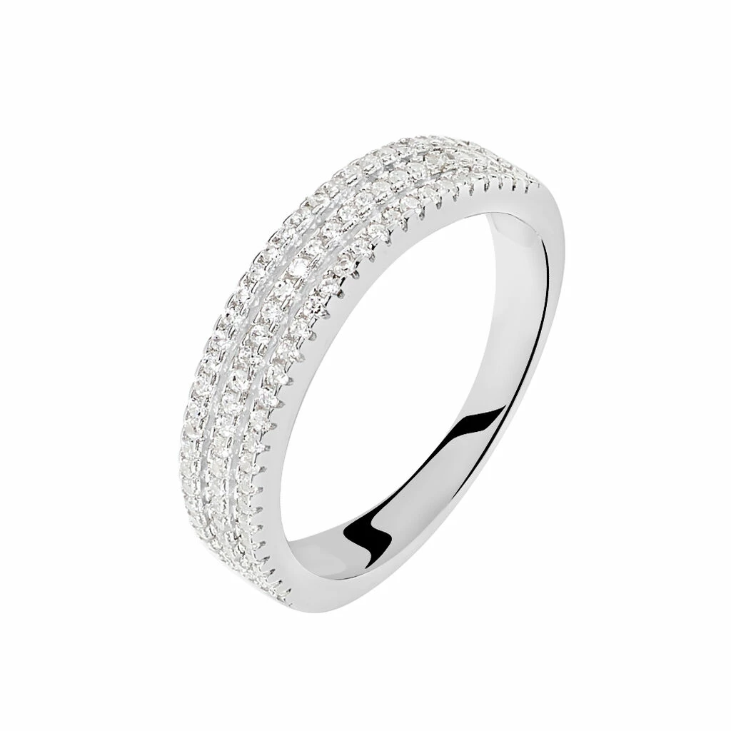 Bague Argent Blanc 925/1000 3 Rangs Pavage Oxydes De Zirconium