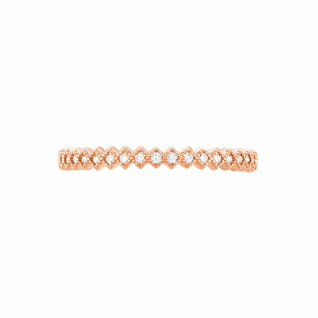 Bague Argent Rose 925/1000 Motifs Losanges Oxydes De Zirconium