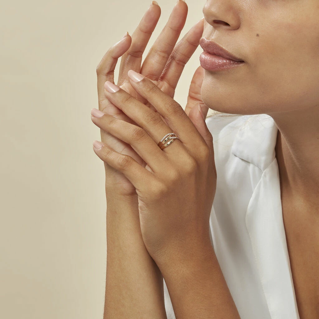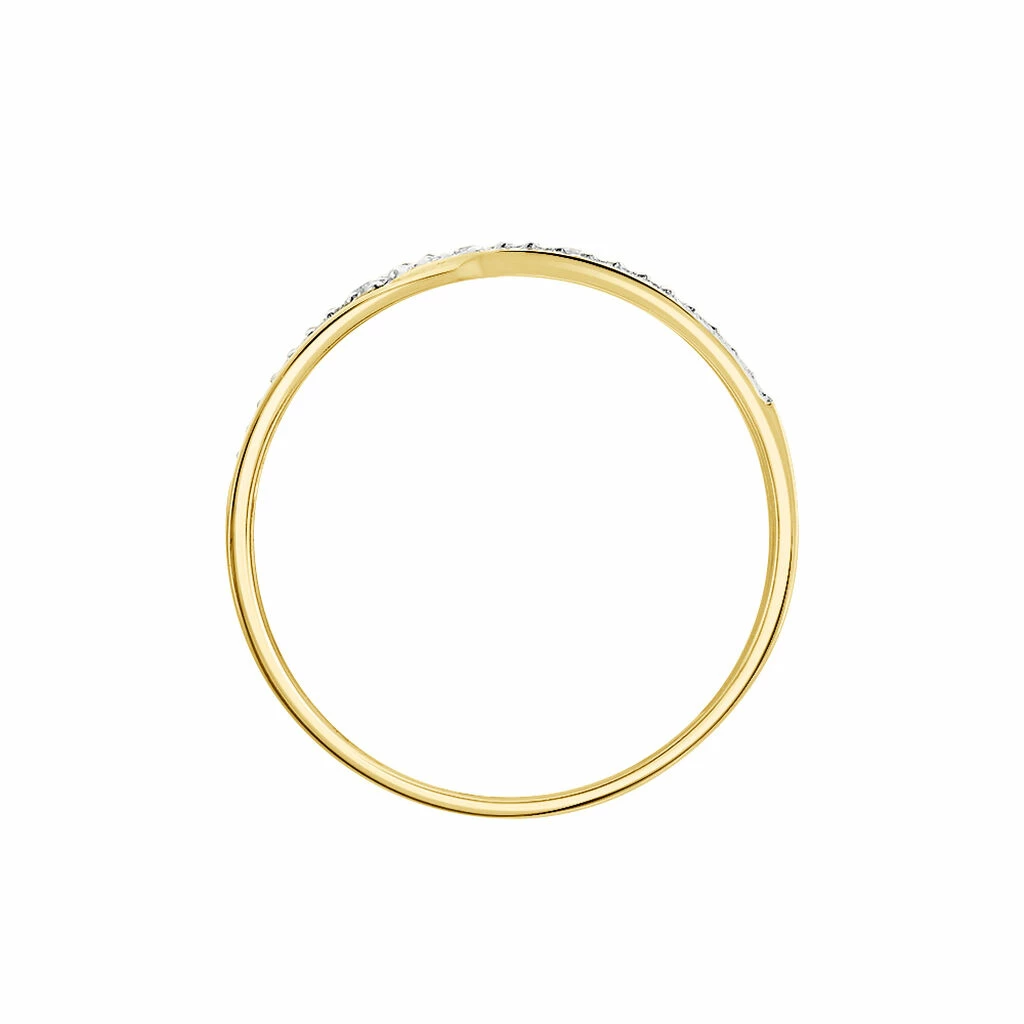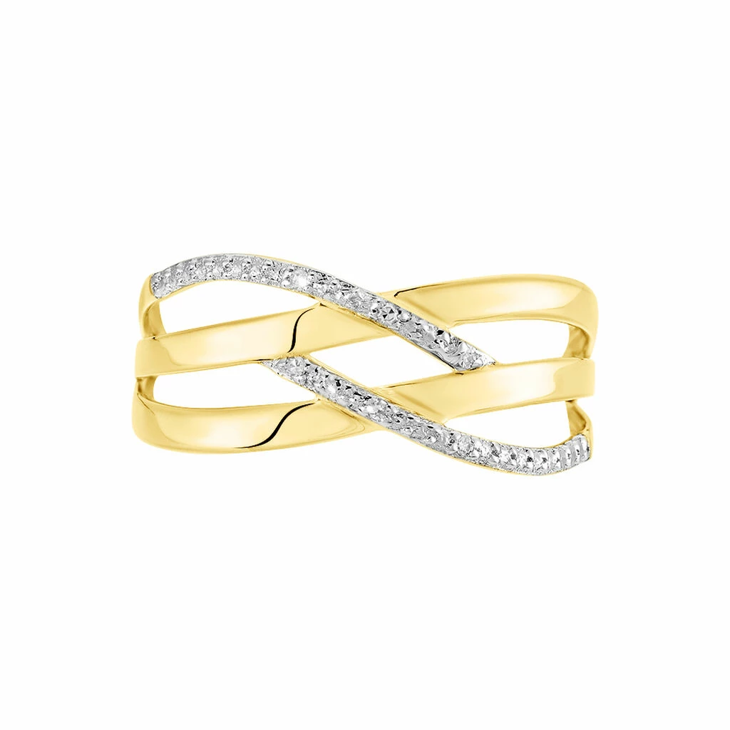 Bague Or Jaune 375/1000 Motifs Vagues Entrelacees Ajourees Diamants