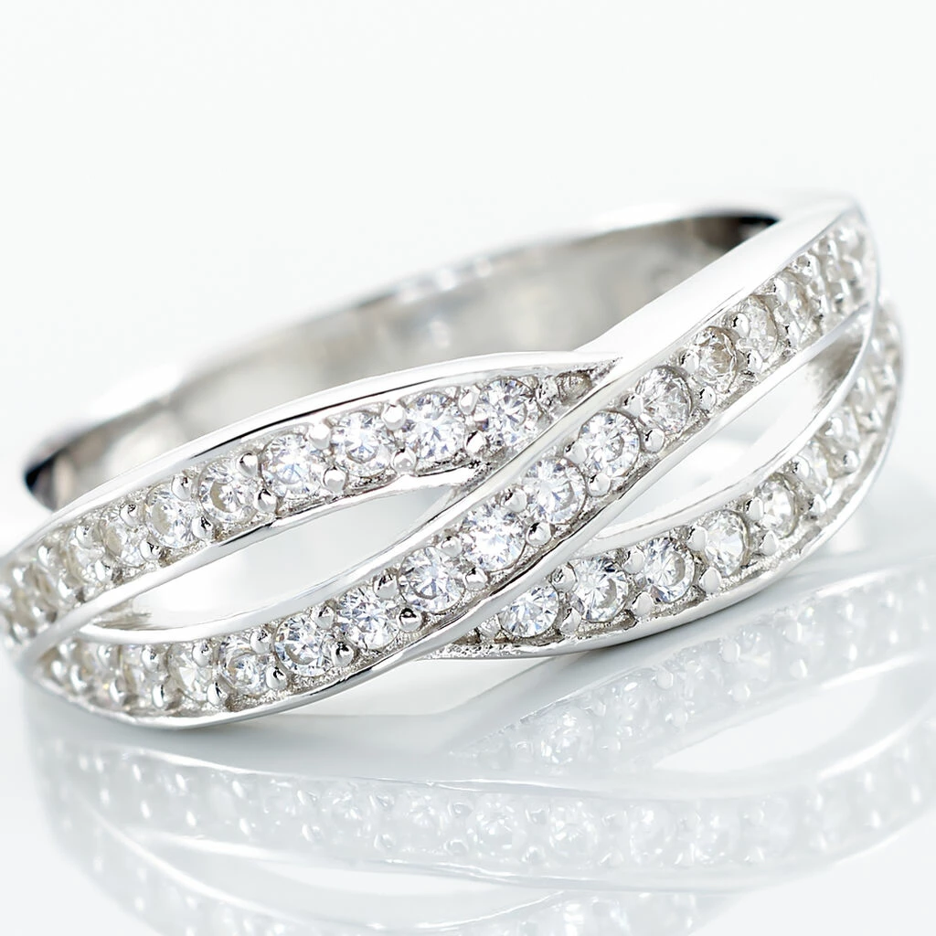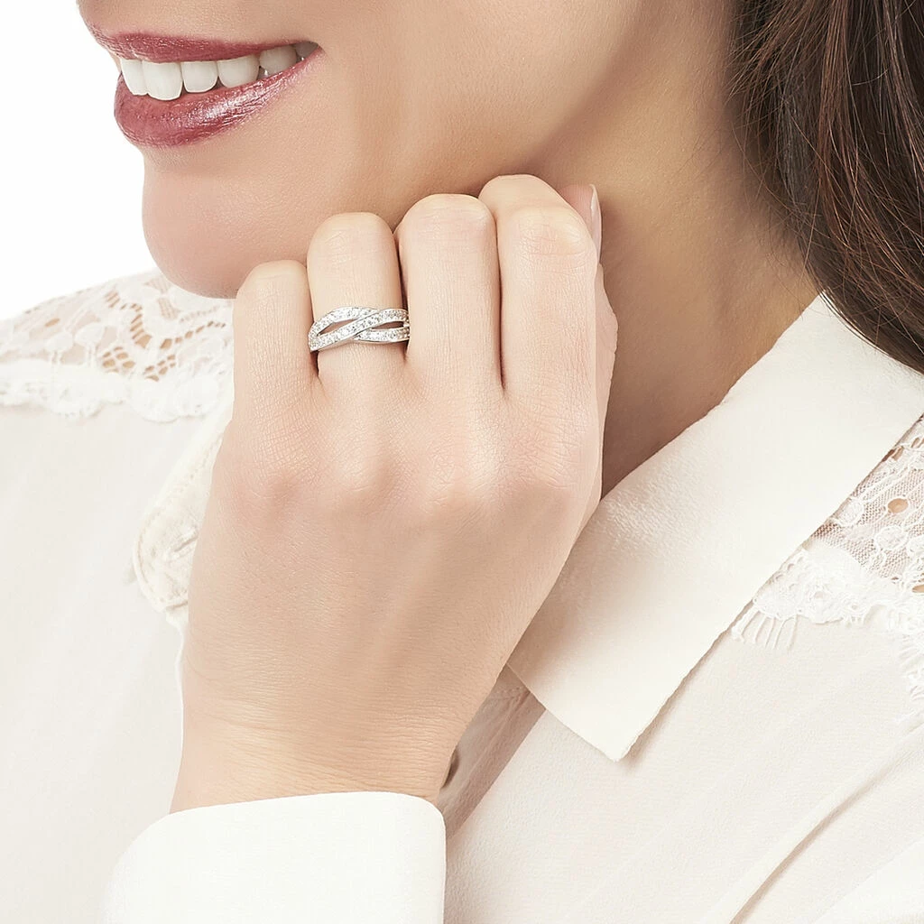 Bague Jonc Argent 925/1000 3 Rangs Entrelaces Oxydes De Zirconium