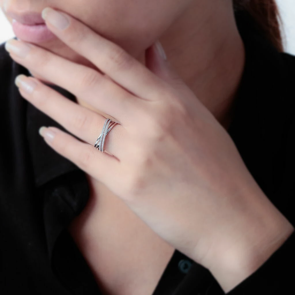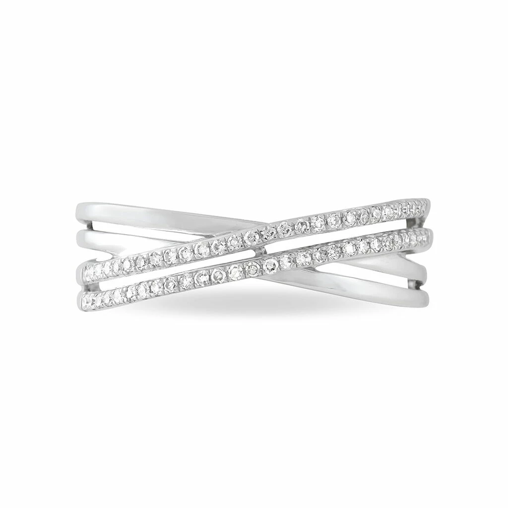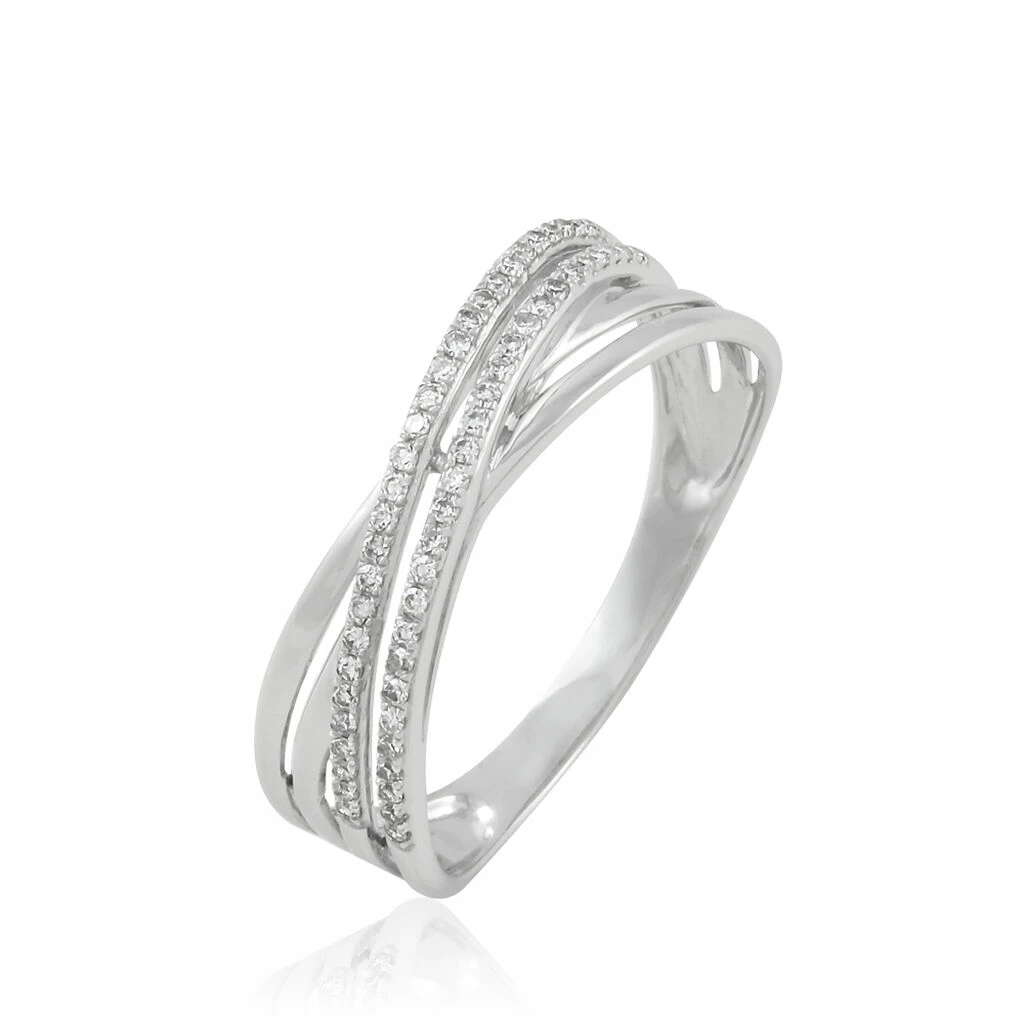 Bague Or Blanc 375/1000 Motif Entrelace Diamants