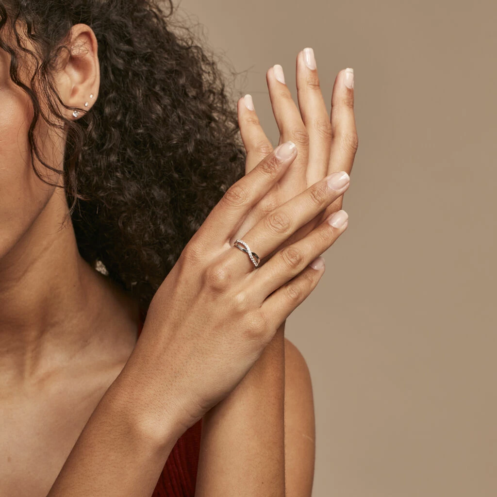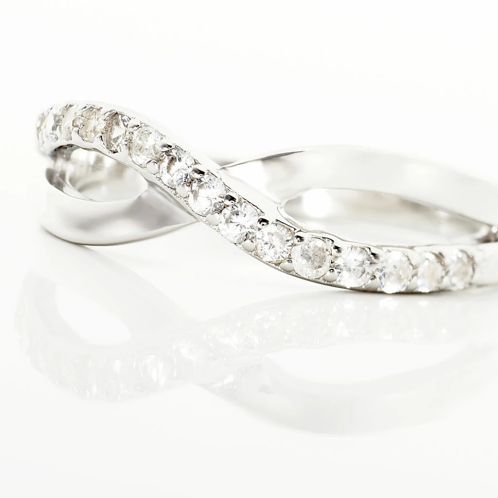 Bague Argent Blanc 925/1000 Croises Oxydes De Zirconium