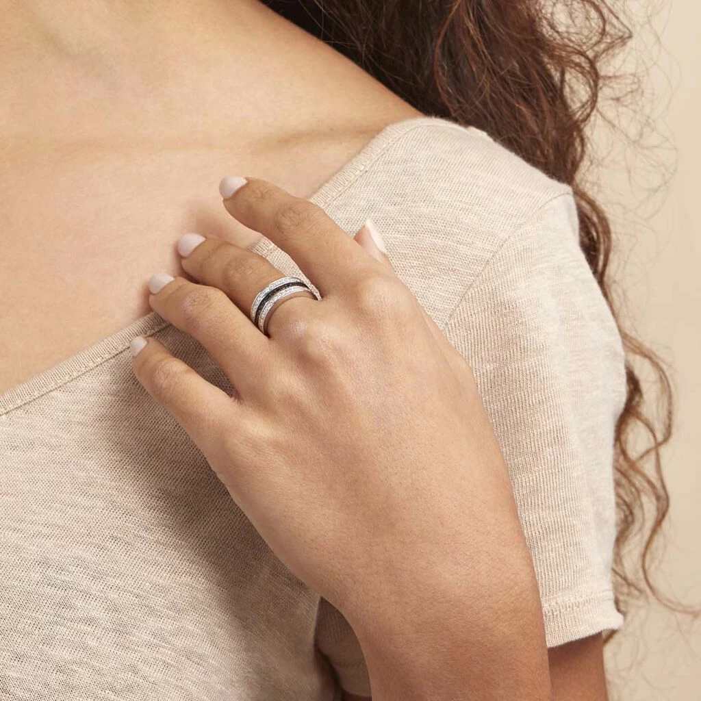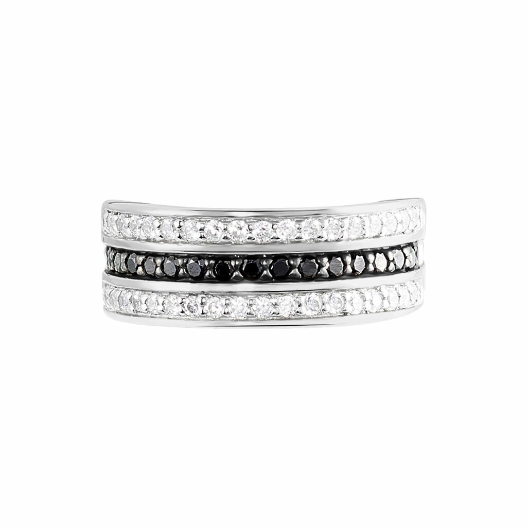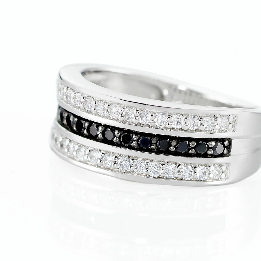 Bague Argent Blanc 925/1000 1 Rang Oxydes De Zirconium Noirs Et 2 Rangs Oxydes De Zirconium Blancs