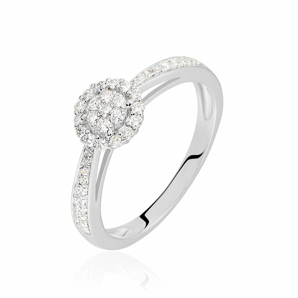 Bague Or Blanc 375/1000 Multipierres Entourage Diamants Corps De Bague Accompagne Diamants