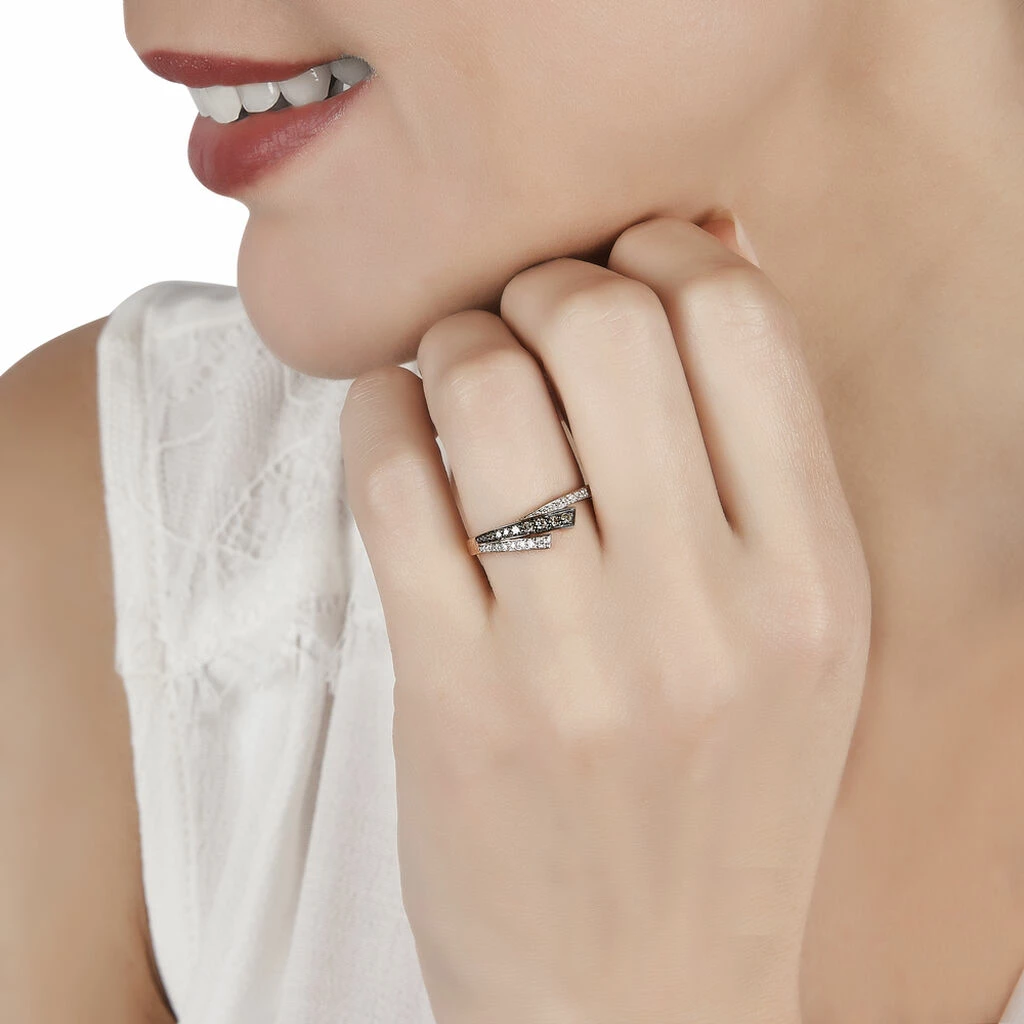 Bague Or Rose 375/1000 Pavage Diamants Blancs Et Diamants Bruns