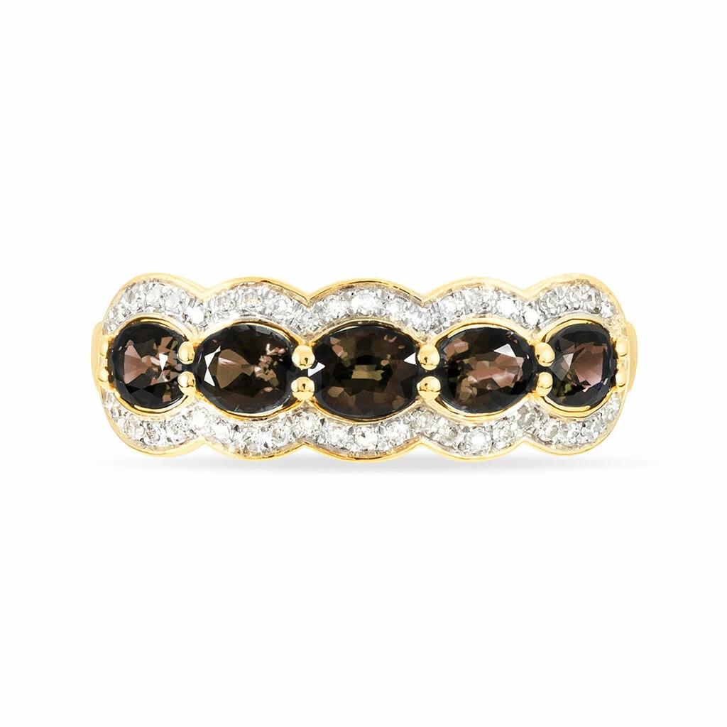 Bague Or Jaune 375/1000 Quartz Fumes Et Diamants