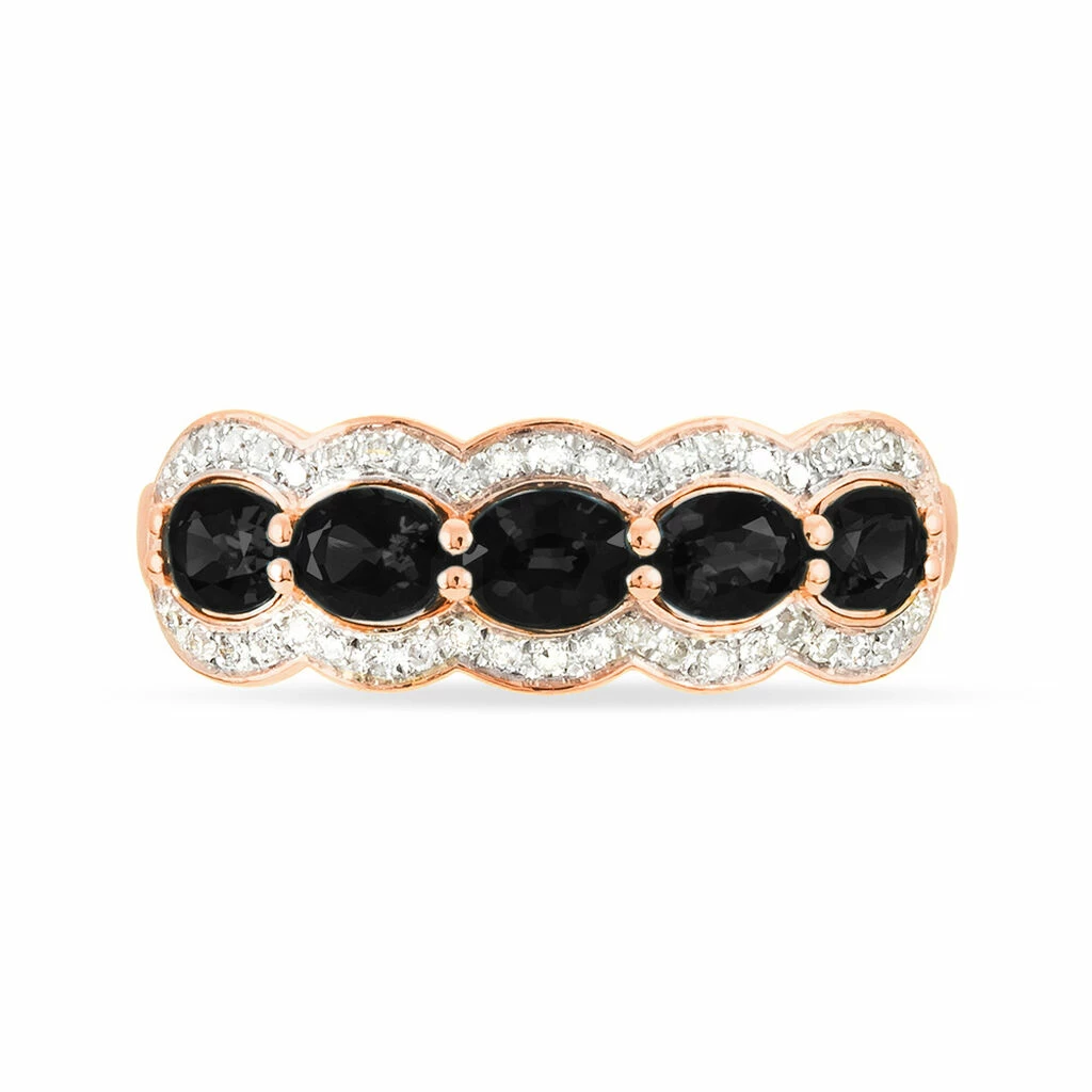 Bague Or Rose 375/1000 Agates Noires Et Diamants