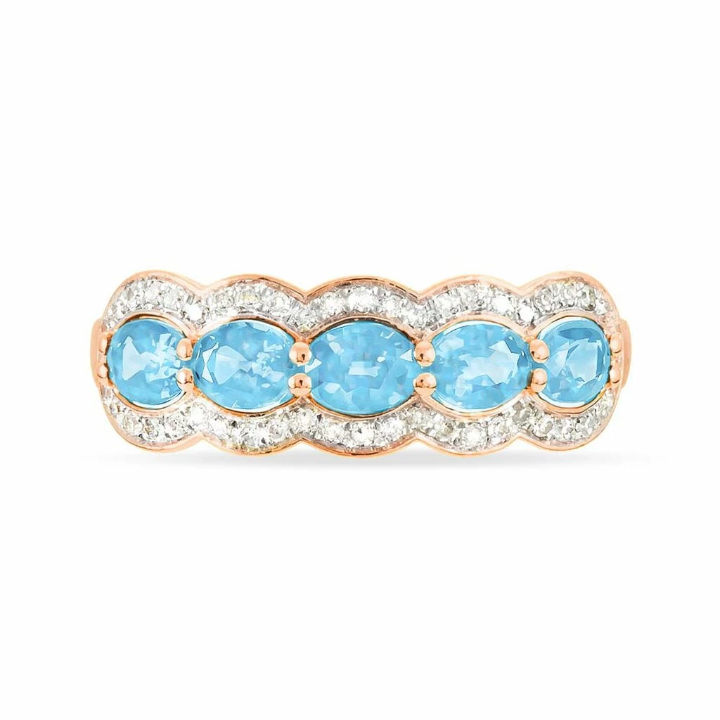 Bague Or Rose 375/1000 Topazes Bleues Claires Et Diamants