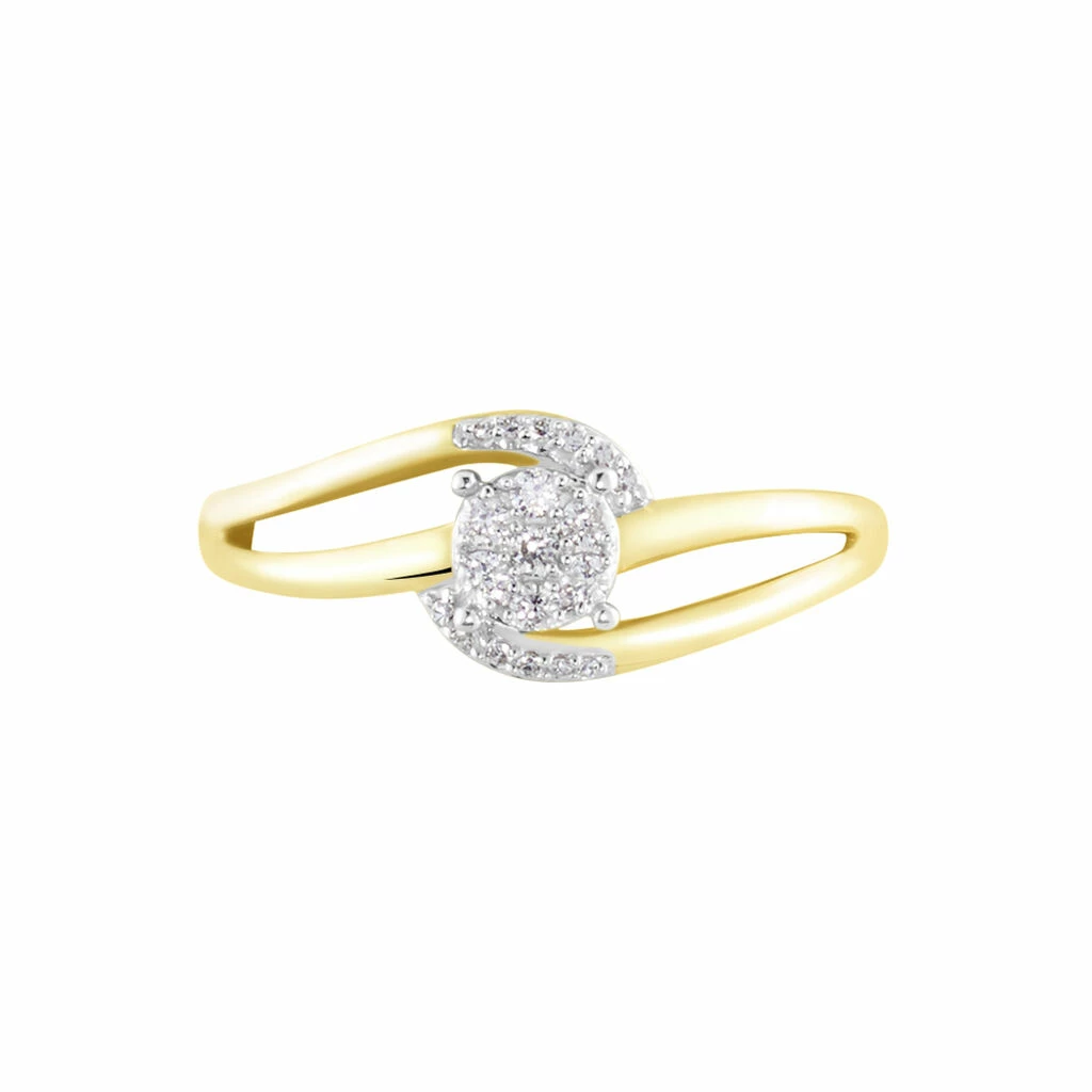 Bague Or Jaune 375/1000 Multipierre Accompagne Vrille Pavage Diamants