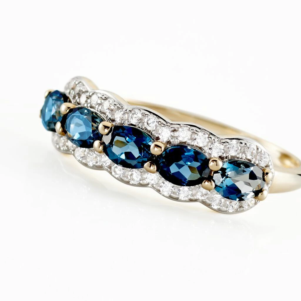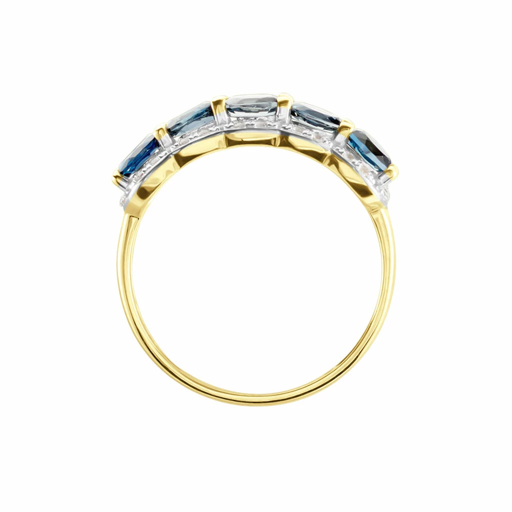 Bague Multipierres Or Jaune 375/1000 Topaze London Blue Serti Griffes