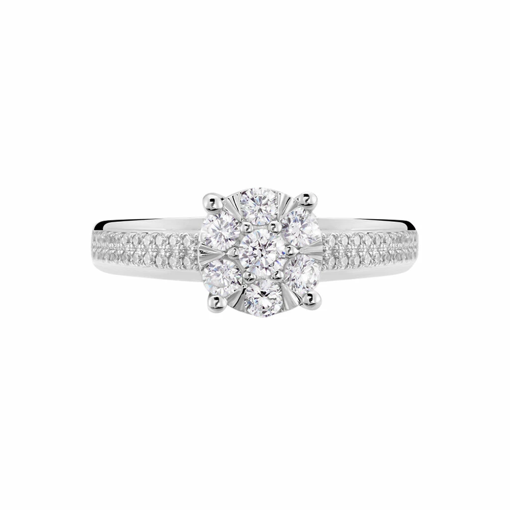 Bague Or Blanc 375/1000 Multipierres Accompagne Oxydes De Zirconium