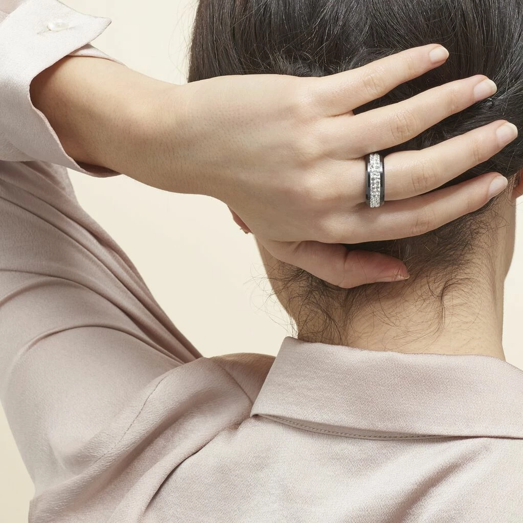Bague Noire Ceramique Blanc Céramique Et Strass