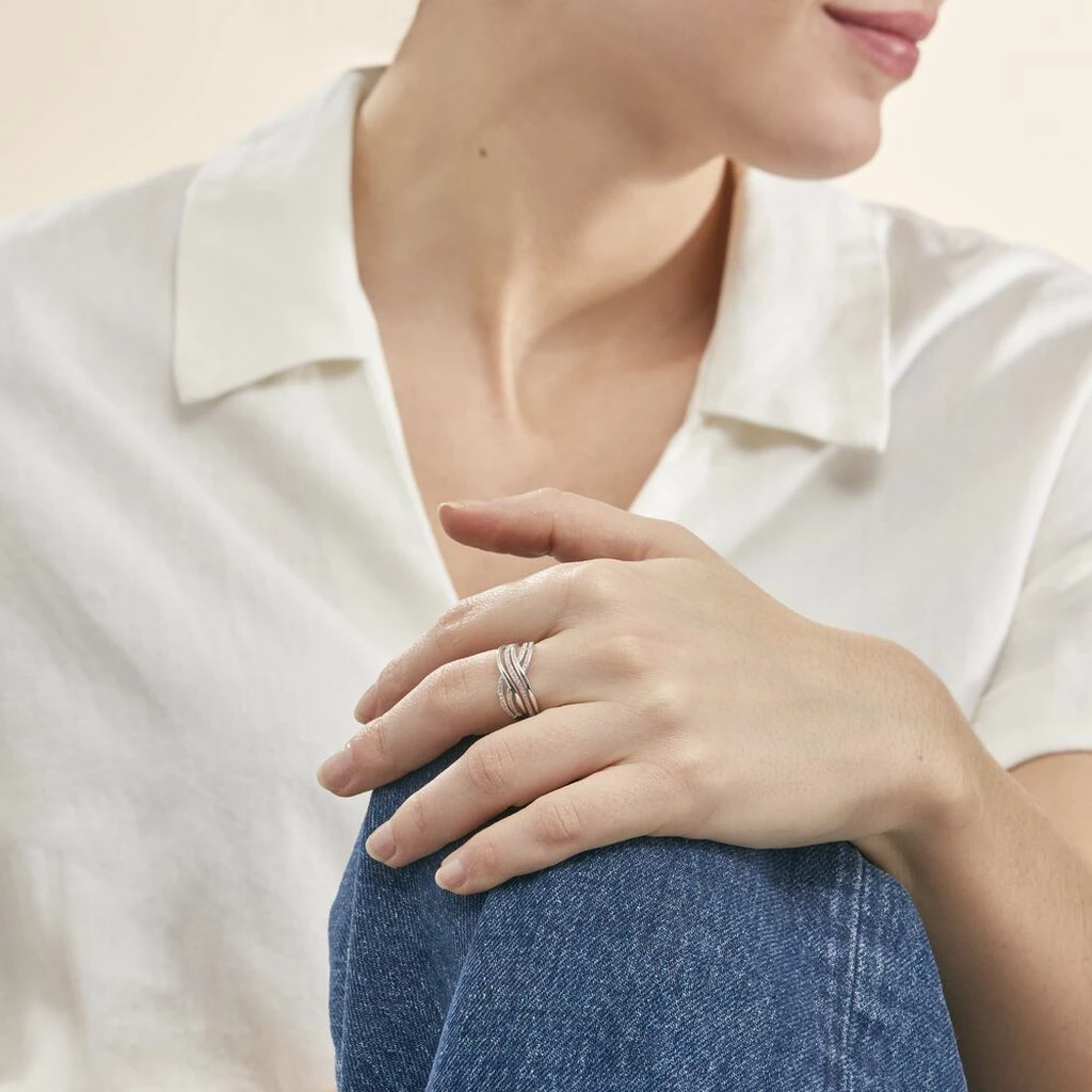 Bague Or Blanc 375/1000 Pavage Diamants Croise Ocean