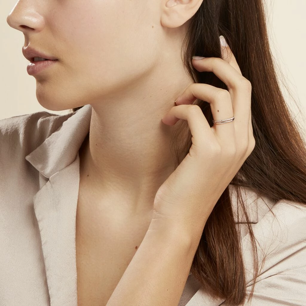 Délicate et raffinée, cette bague en or blanc 375/1000ème complète votre look avec élégance. Elle est simple, mais pas moins attrayante avec son design double rangs, sublimé par un semi-pavage de diamants blancs de 0,009 carat. Cette jolie bague est aussi disponible en or jaune.