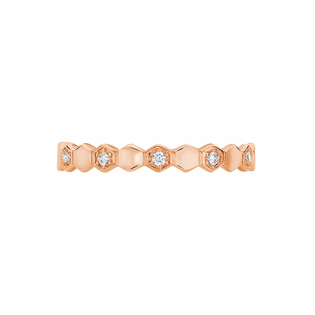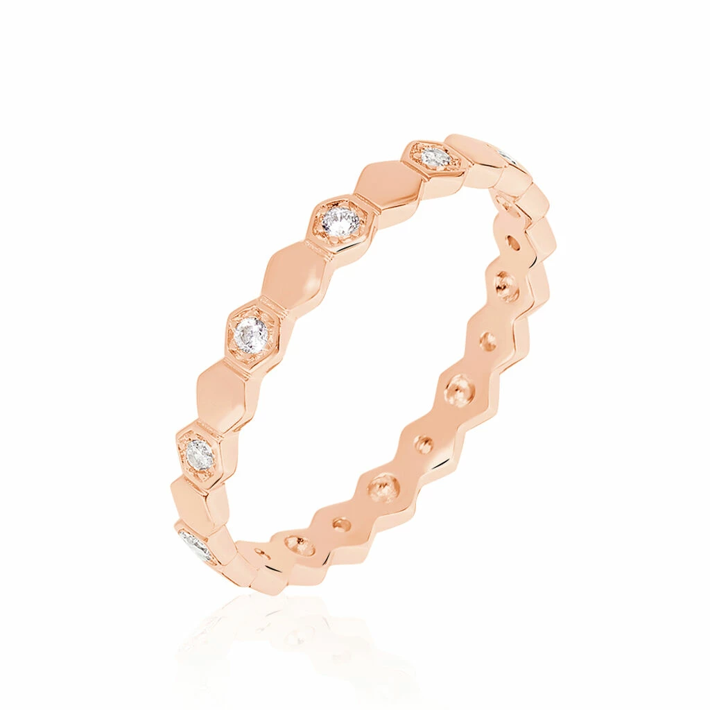 Bague Argent Rose 925/1000 Motifs Hexagonaux Semi Pavage Oxyde
