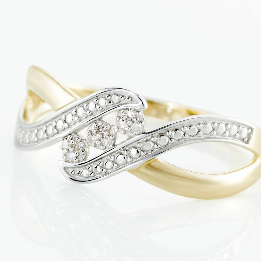 Bague Or Bicolore 375/1000 Forme Vague Trilogie Diamants